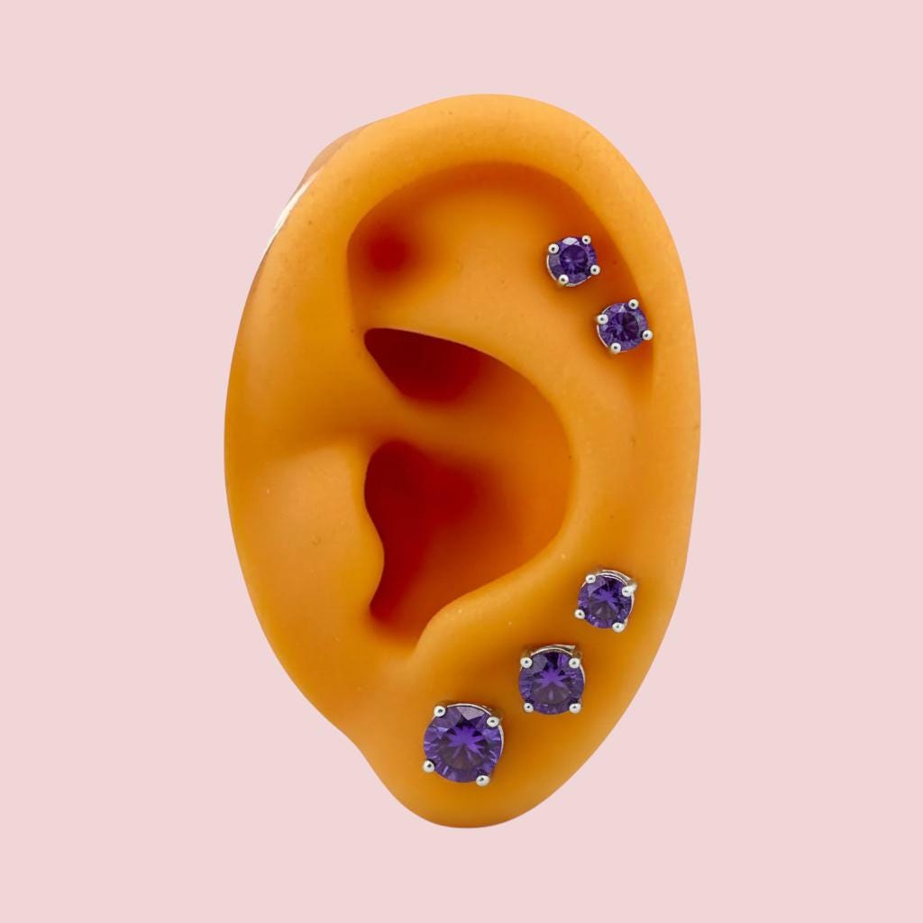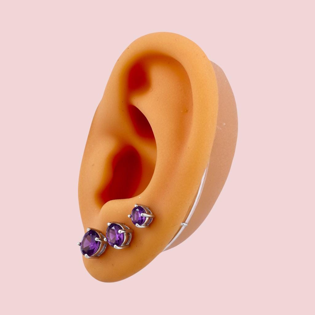 Purple Amethyst Round Stud .925 Sterling Silver Earrings - 3mm, 4mm, 5mm, 6mm or 7mm - February Birthstone