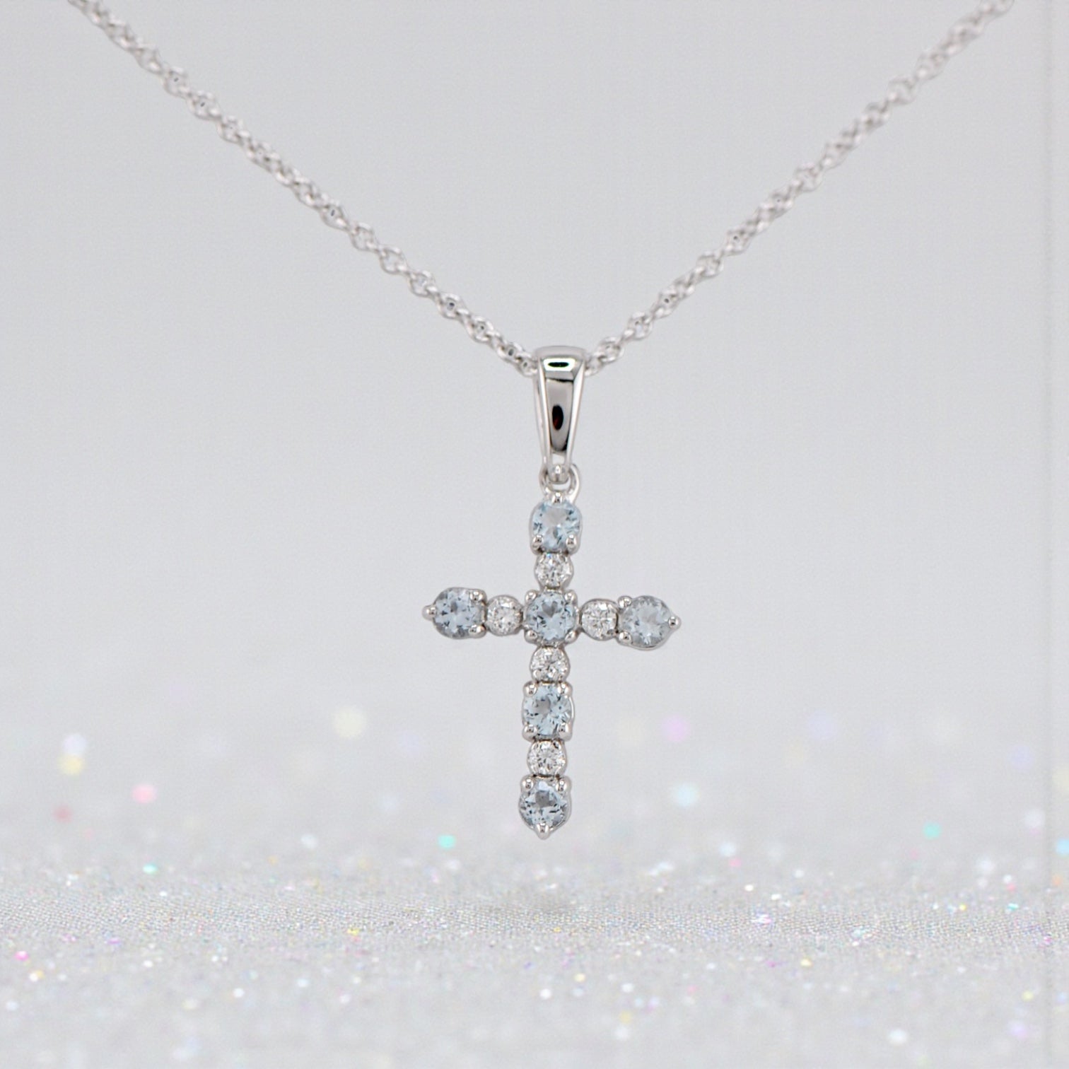 14k White or Yellow Gold Aquamarine and Diamond Cross Pendant