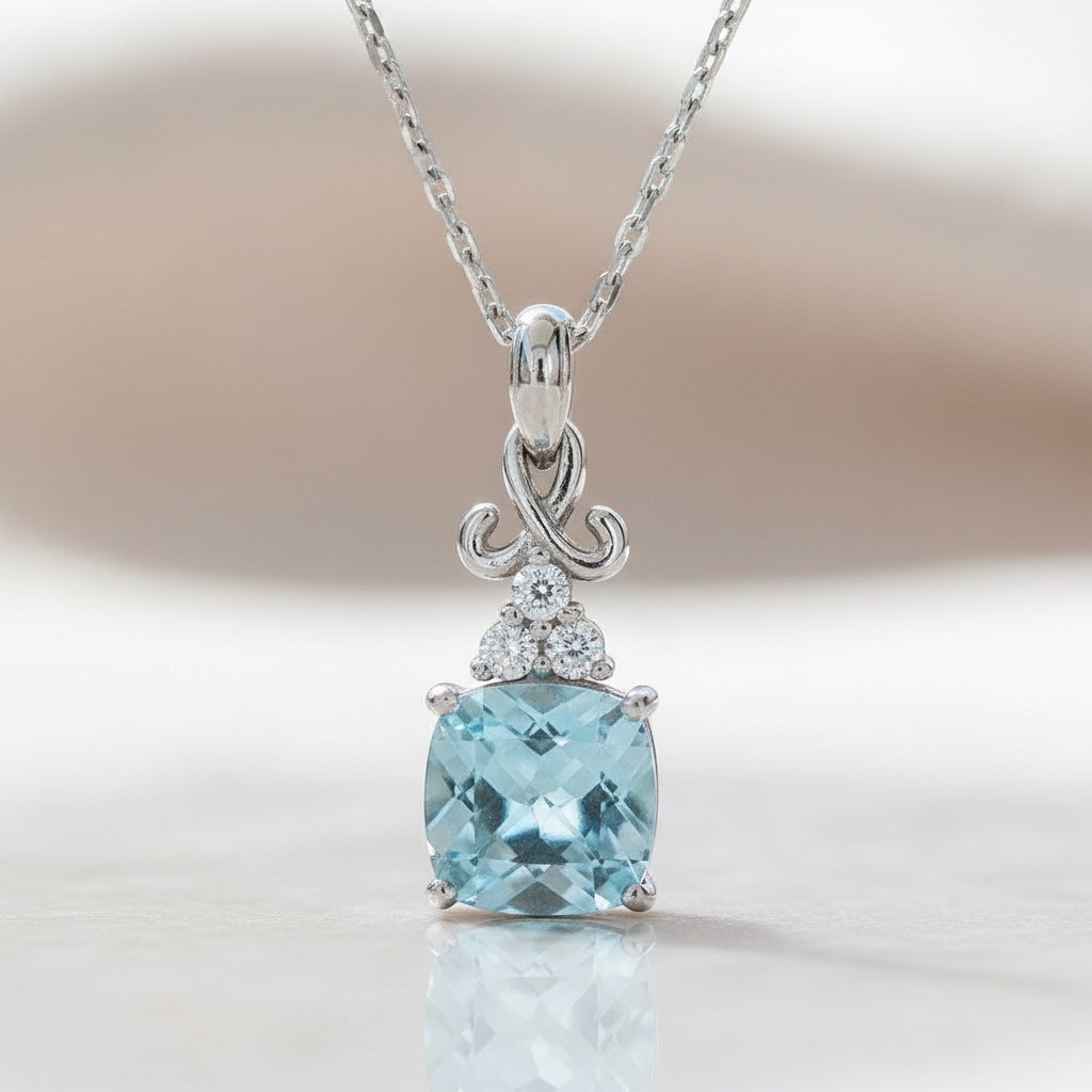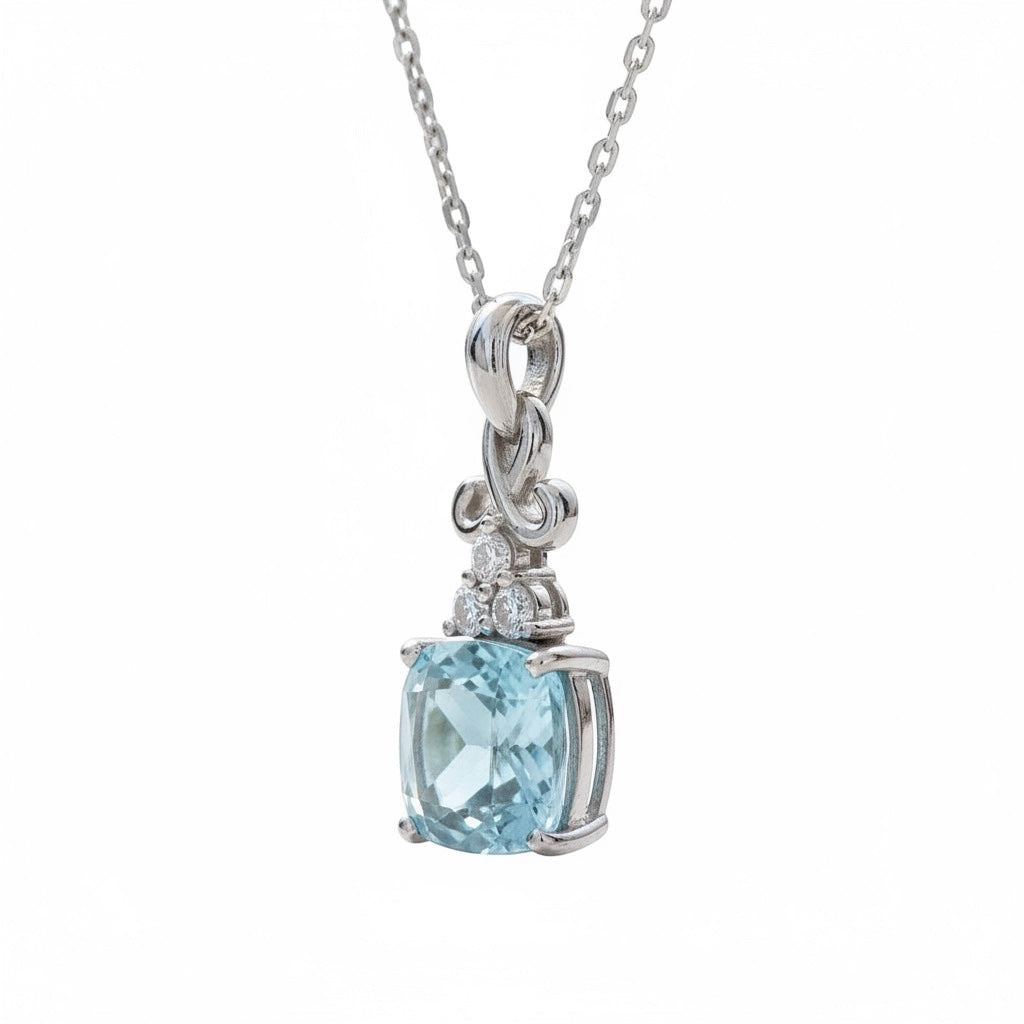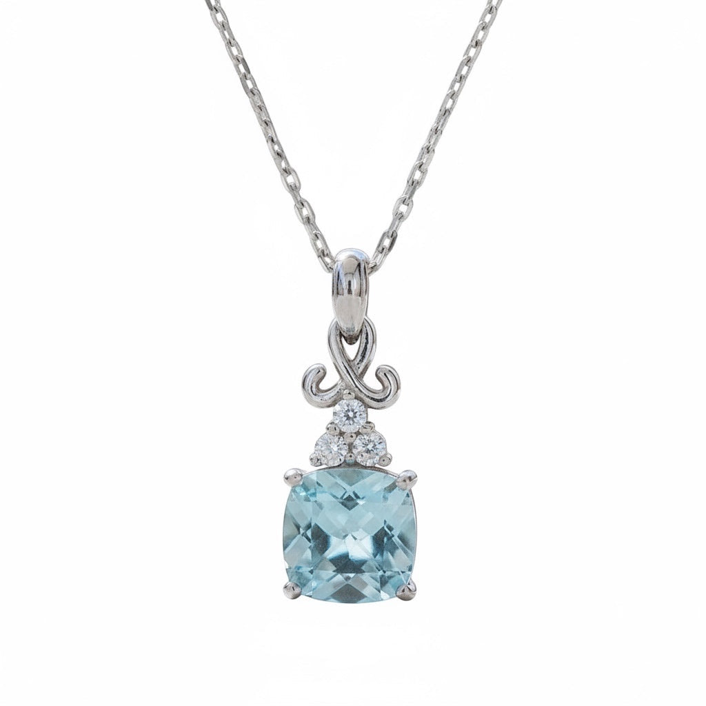 Sterling Silver Cushion Square Blue Topaz and White Topaz Pendant