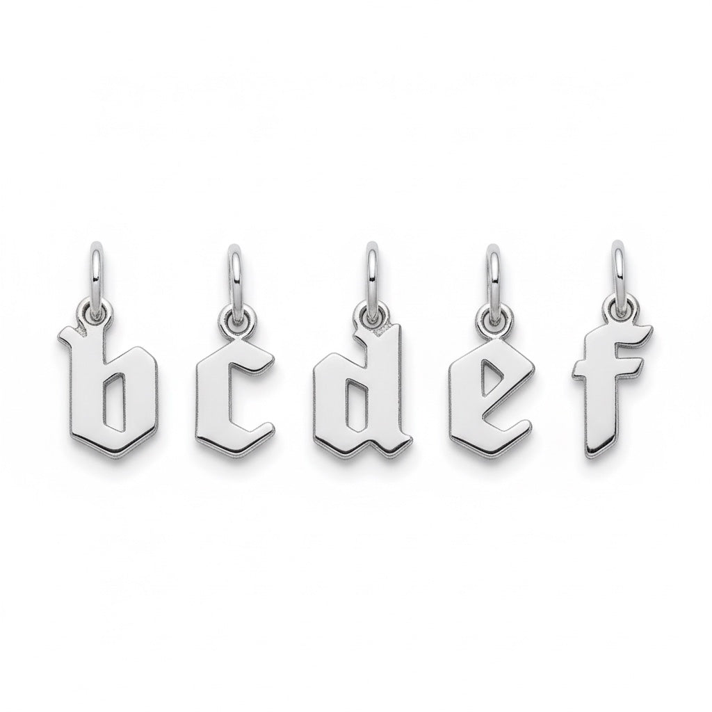 Sterling Silver Gothic Font Lowercase Initial Charm Pendant - Various Letters