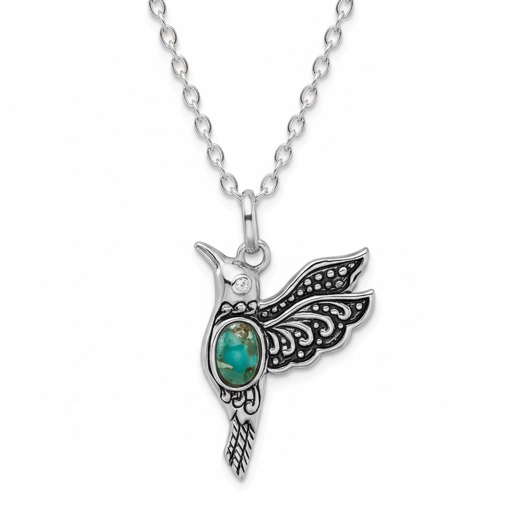 Sterling Silver Oxidized Turquoise Hummingbird Charm Pendant