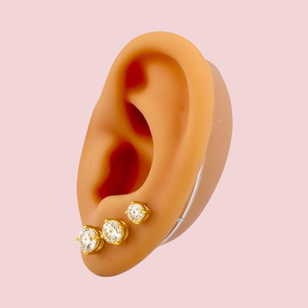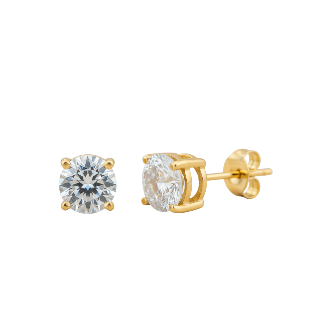 Cubic Zirconia Gold Plated .925 Sterling Silver Earrings - 3mm, 4mm, 5mm, 6mm or 7mm - April Birthstone Imitation Diamond