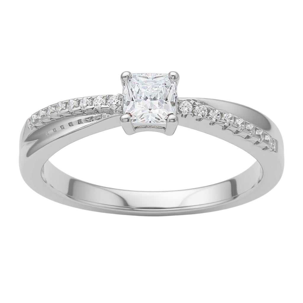 Sterling Silver CZ Princess Square Criss Cross Ring