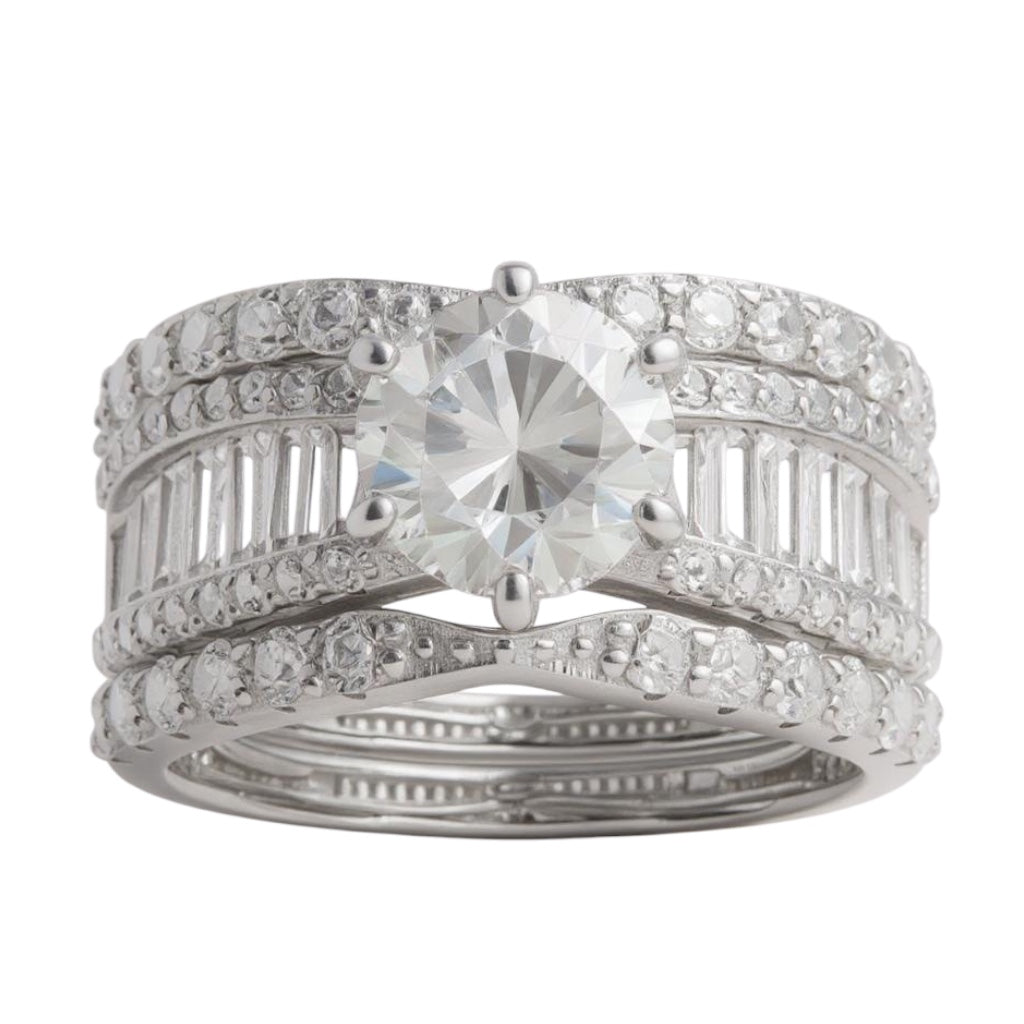 Sterling Silver Round with Baguette CZ Trio 3 Ring Set
