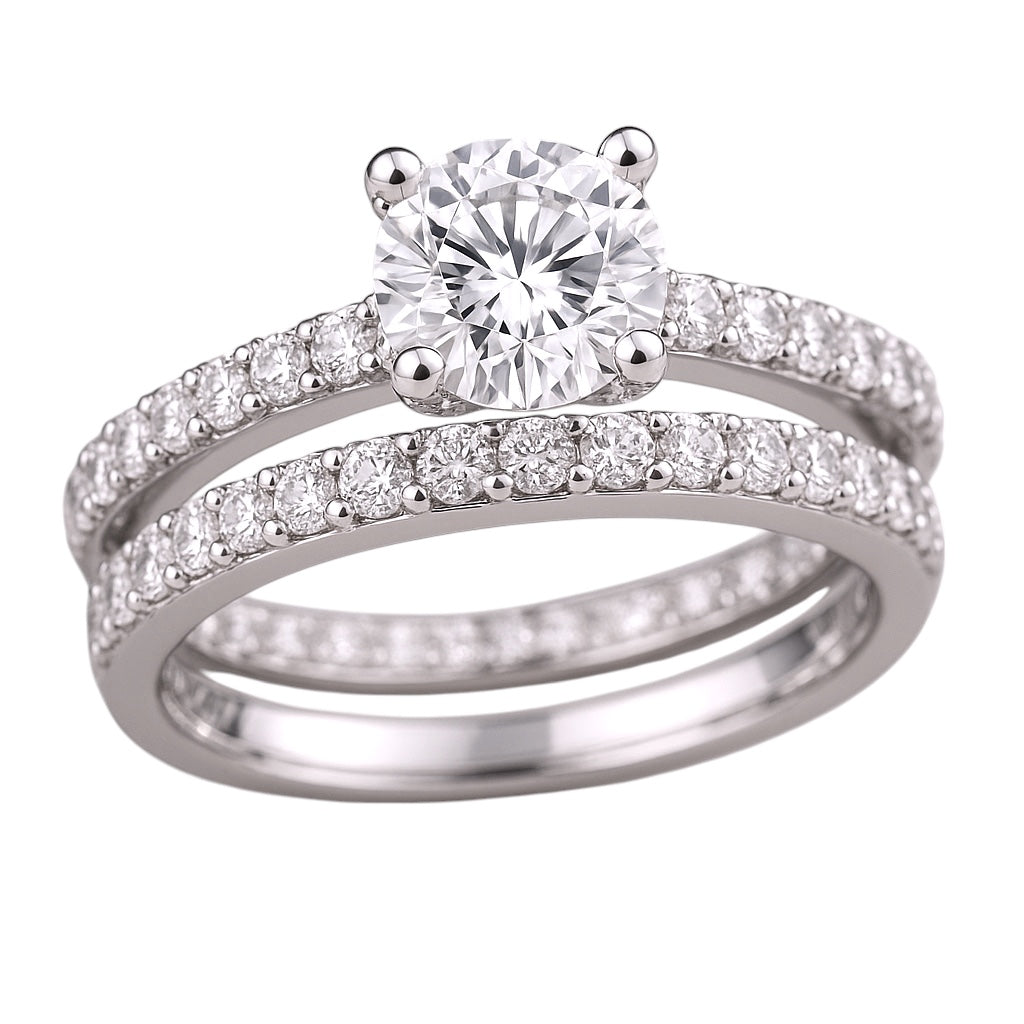 Sterling Silver CZ Round Two Piece Channel Set Wedding Rings Set