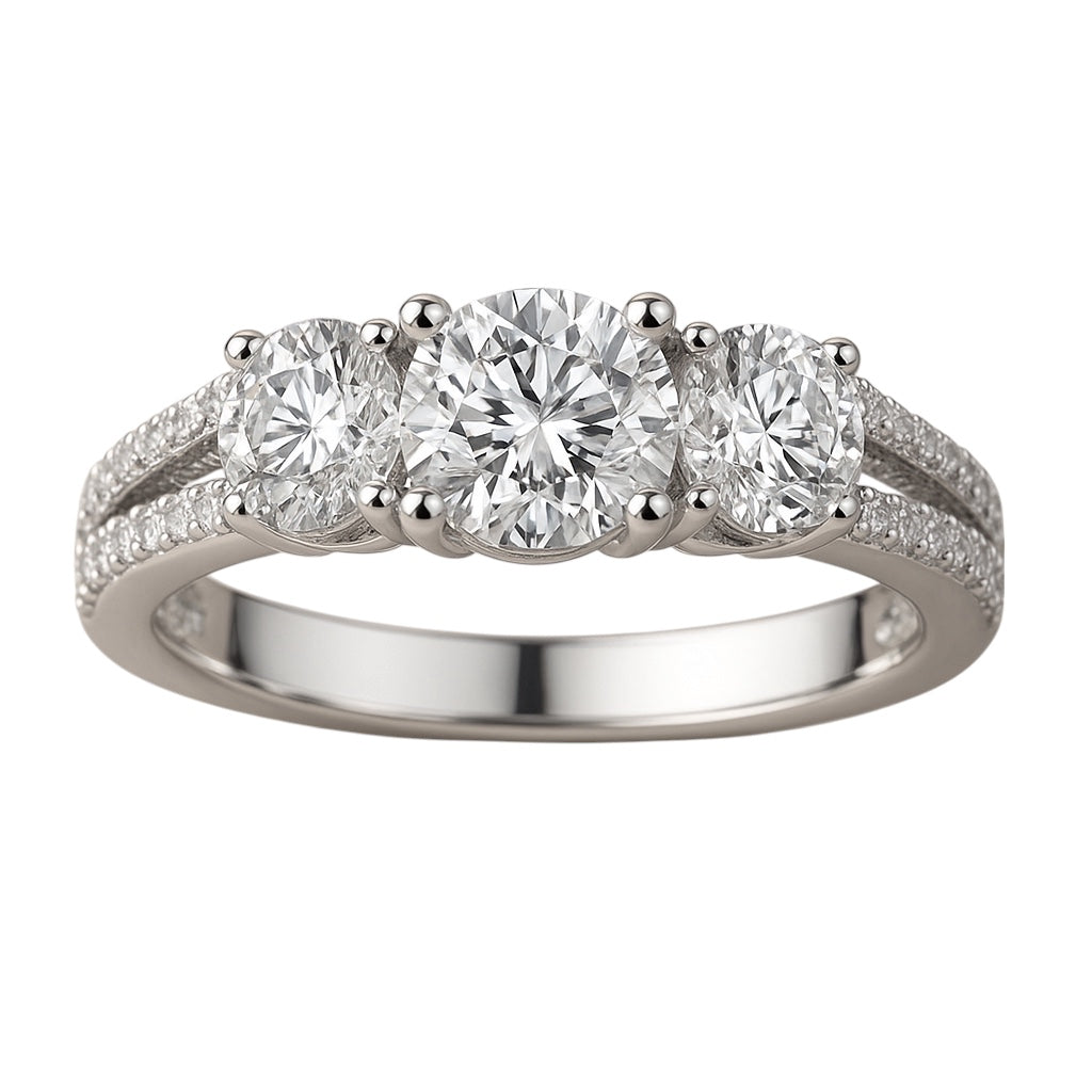 Sterling Silver CZ 3 Stone Split Engagement Ring