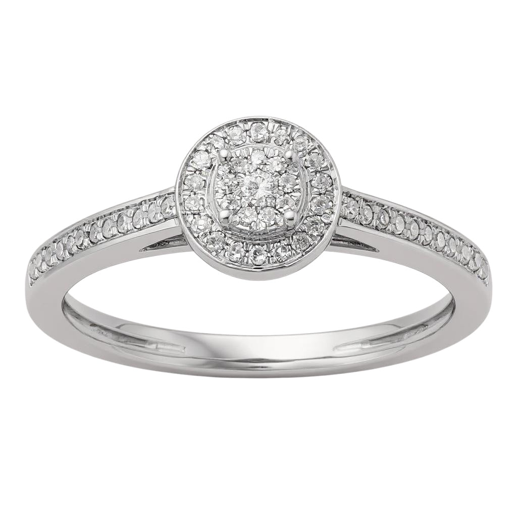 10K White Gold Multi-Stone Diamond Round Halo Engagement Ring