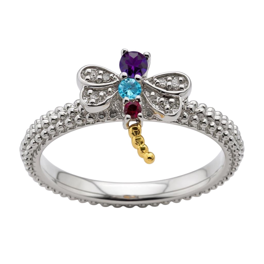 Sterling Silver & 14k Gold Stackable Expressions Gemstone Diamond Dragonfly Ring