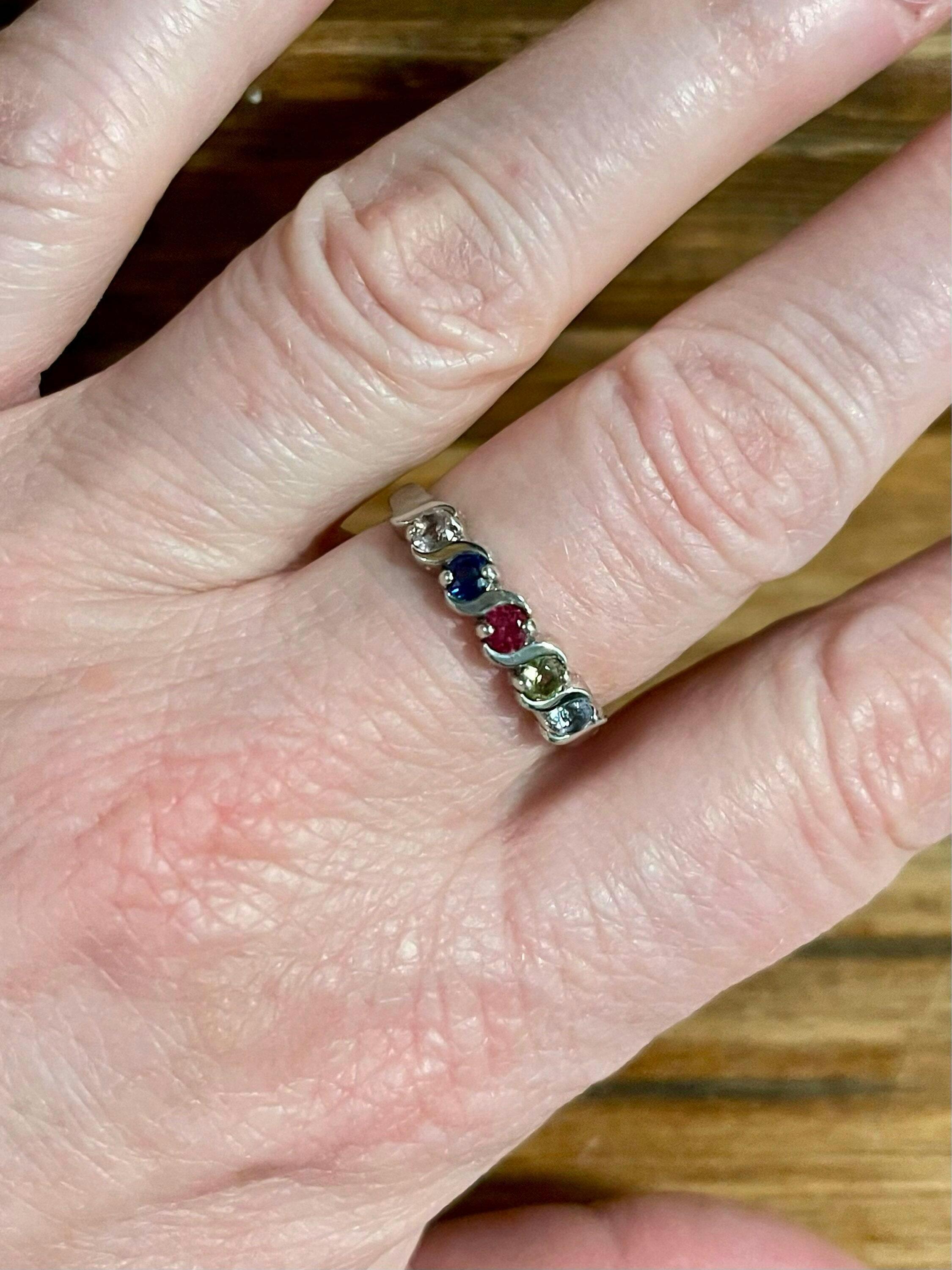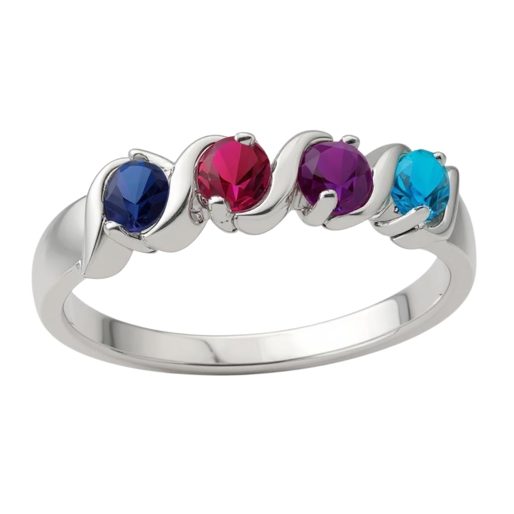 Curved Set Mother's Family 3mm Birthstone Ring