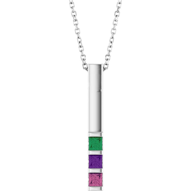 Vertical Bar Family Channel Set Square Birthstone Pendant or Necklace