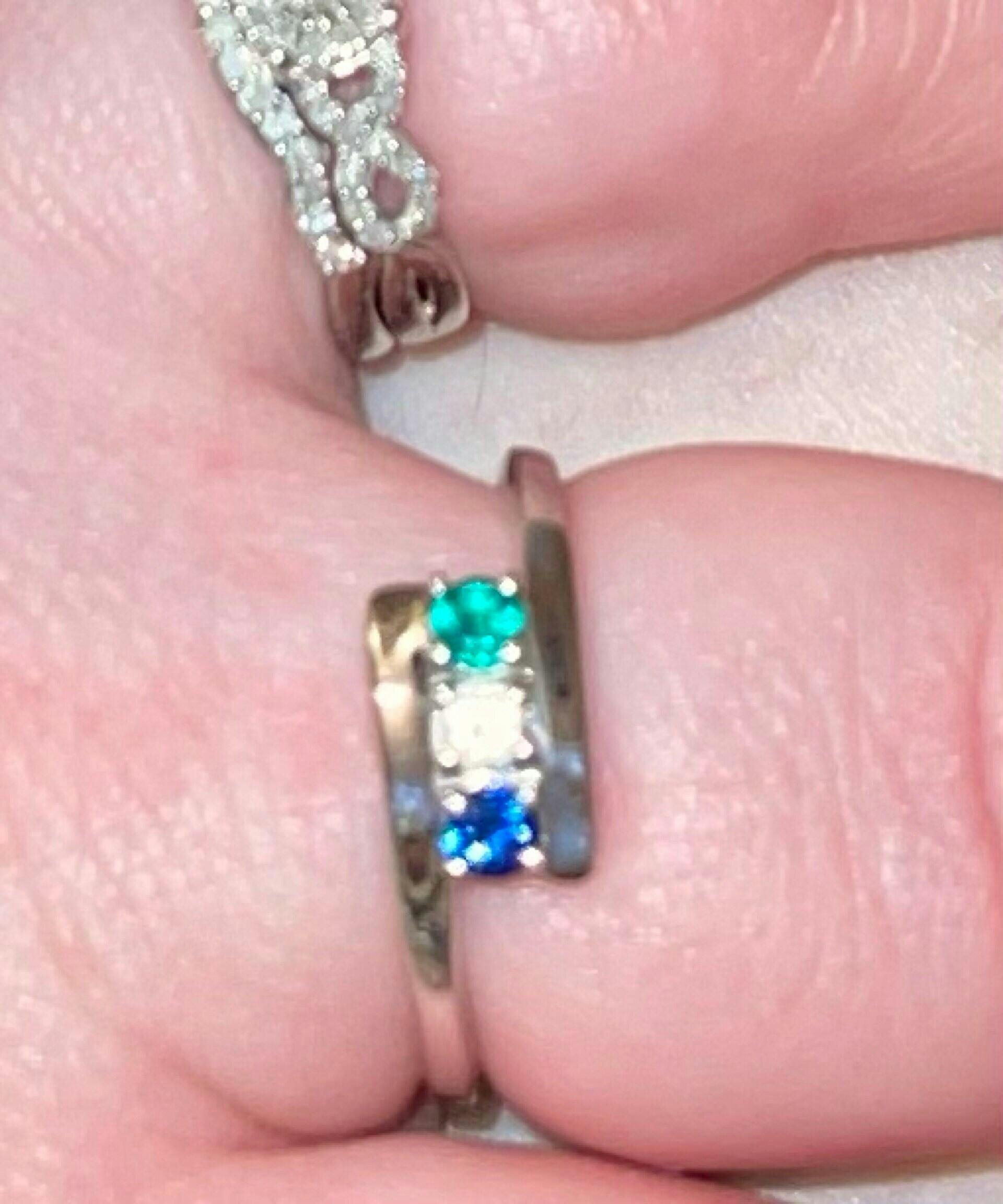 The ring is stunning! It also came early. I tried to find a breast cancer survivor ring but no one had it in my size 5. So you created this ring with the perfect order of the 3 stones symbolic of life before, life during and life after. Thank you so much! Hopefully others who want such a ring will have you create it.