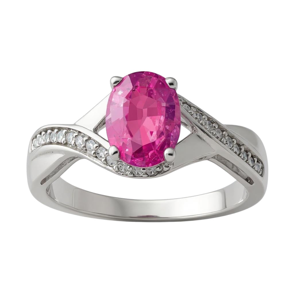 Sterling Silver Oval Lab-Created Pink Sapphire and Diamond Ring