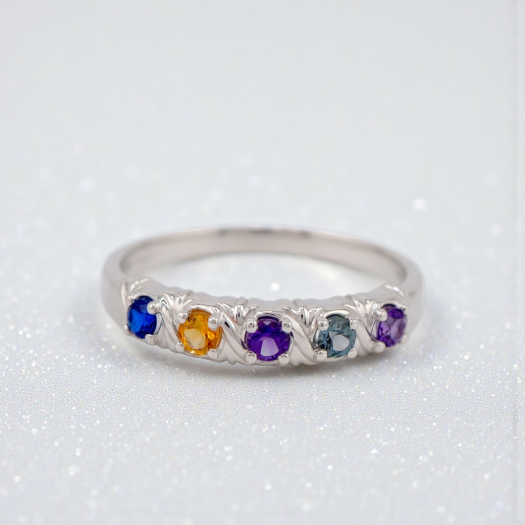 Sterling Silver (4-stone) : 1.827 DWT (2.84 grams) 14k Gold (4-stone) : 2.304 DWT (3.58 grams) |