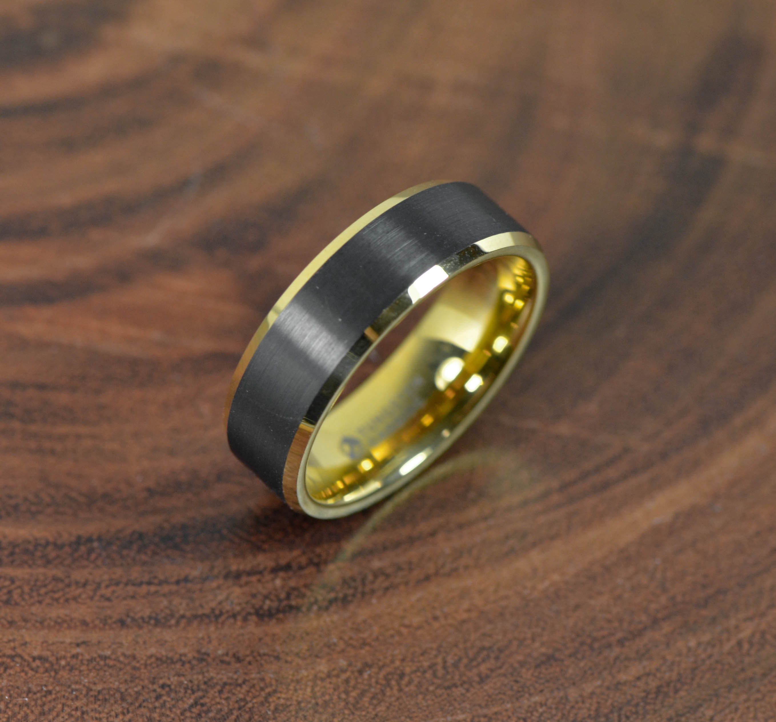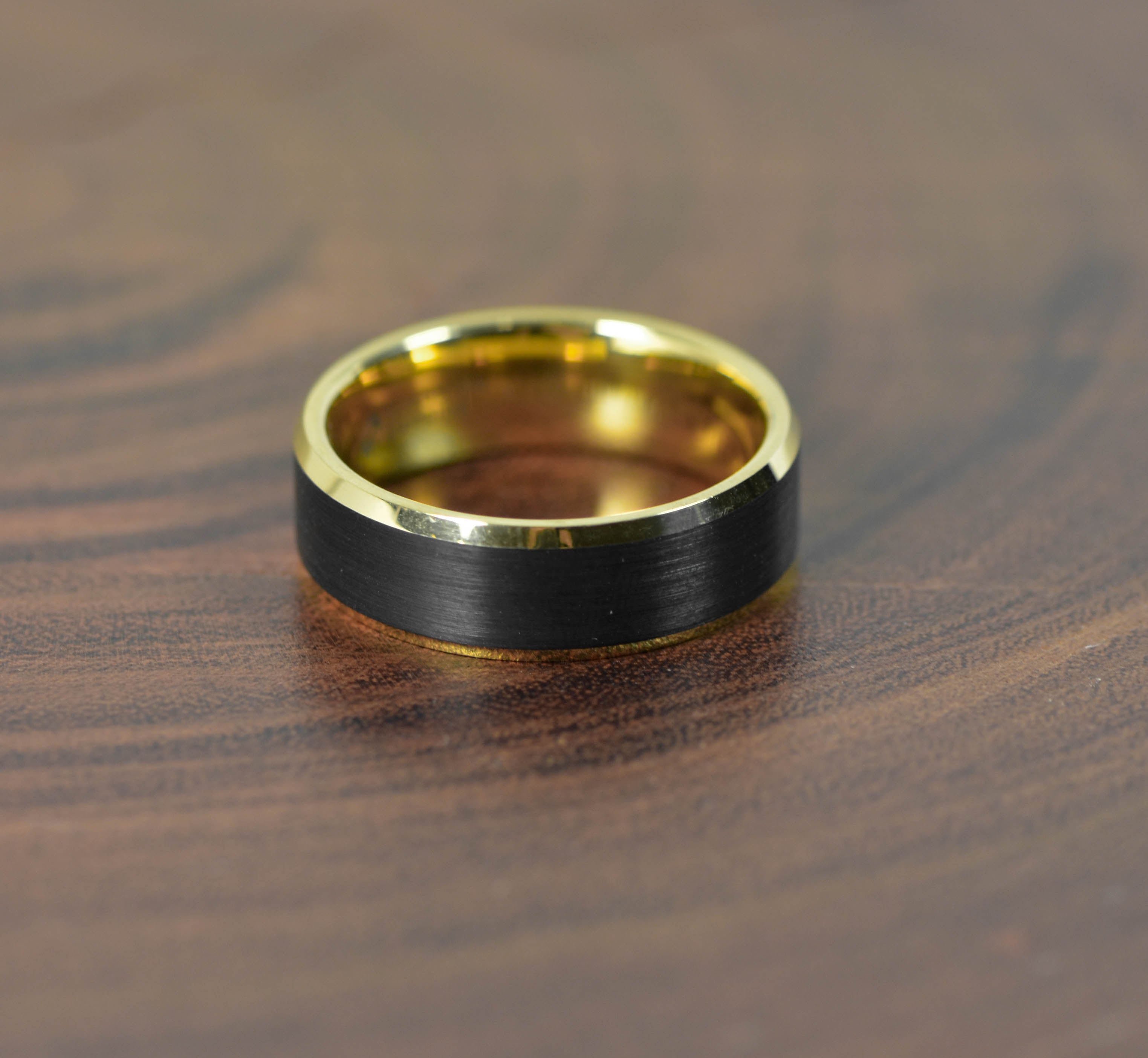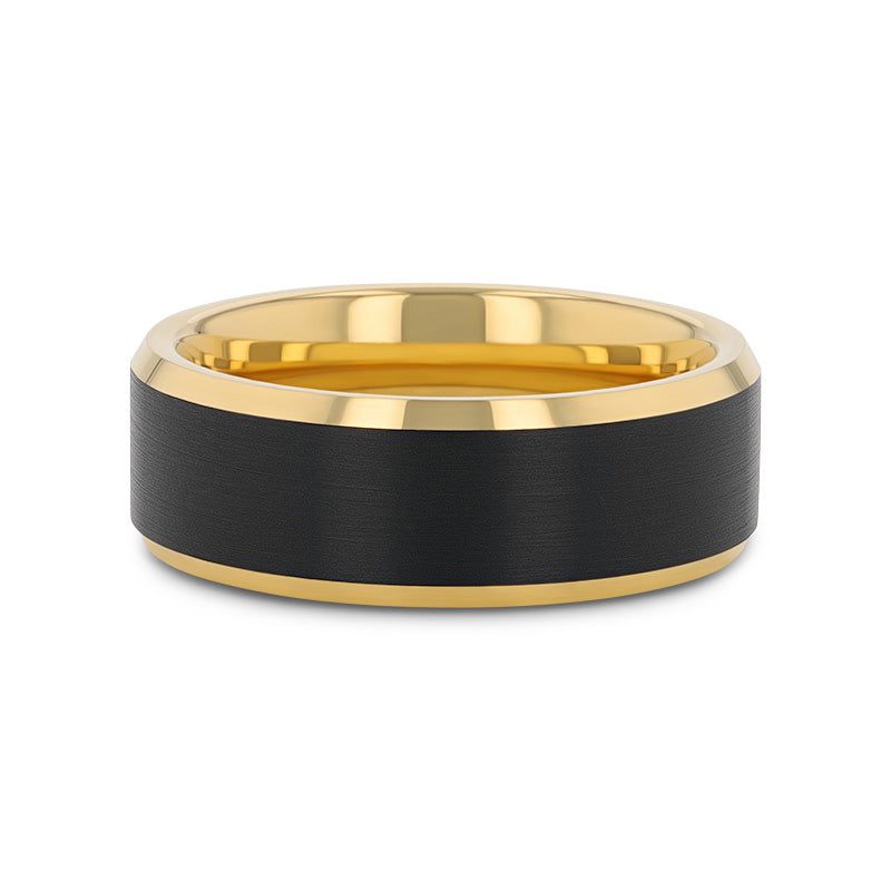 Thorsten Gaston Gold Plated Tungsten Brushed Black Center 8mm Size 10 or 11 Only