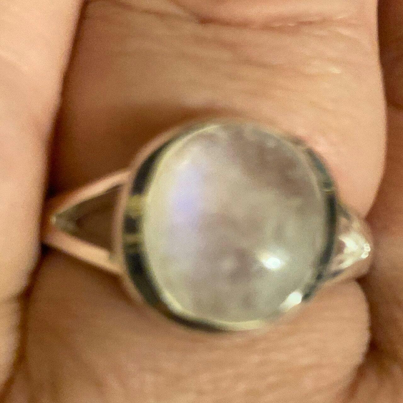 Sterling Silver Large Oval Rainbow Moonstone Ring
