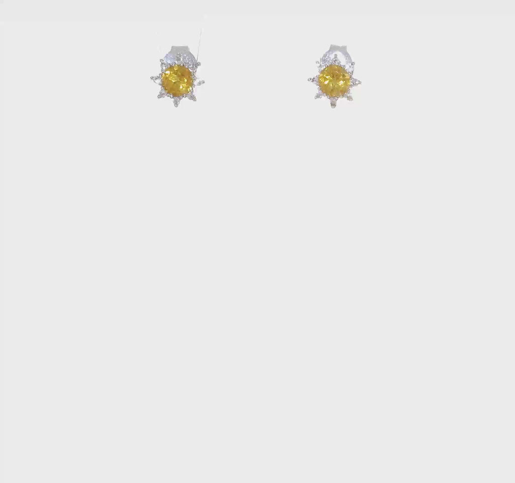 Sterling Silver Round Citrine and White Topaz Halo Post Earrings