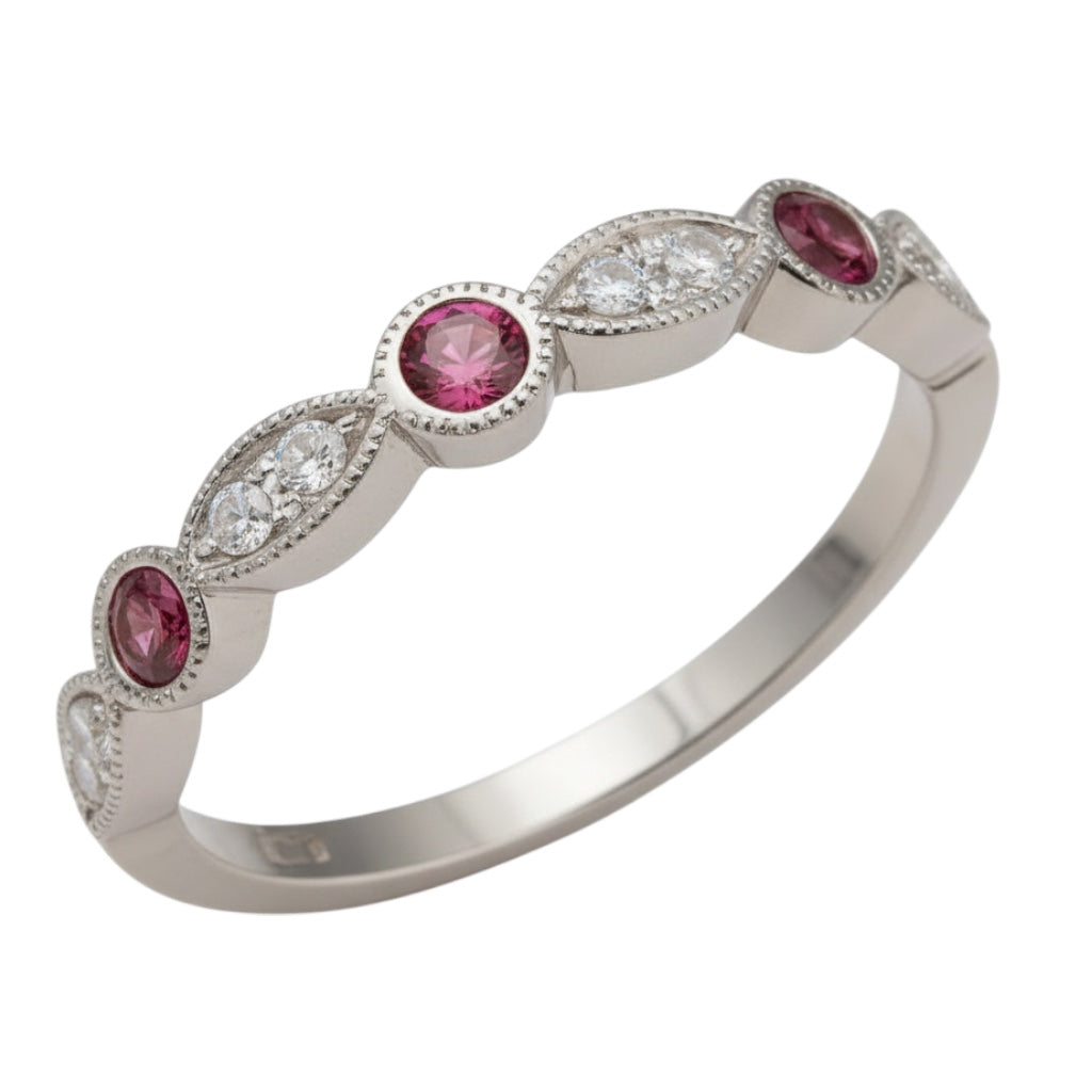 14k White Rose or Yellow Gold Pink Tourmaline & Diamond Anniversary Wedding Band R11807WB-PTM