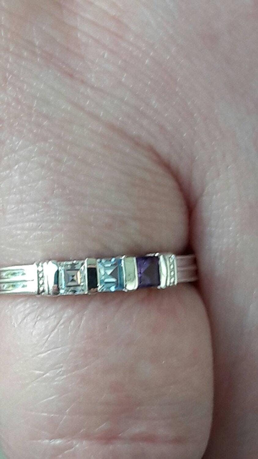 This beautiful Princess Square Channel Set Family Birthstone Ring is set with up to three stones, perfect for your family. Crafted from high-quality sterling silver or solid gold, this classic design is timeless and perfect for any occasion.