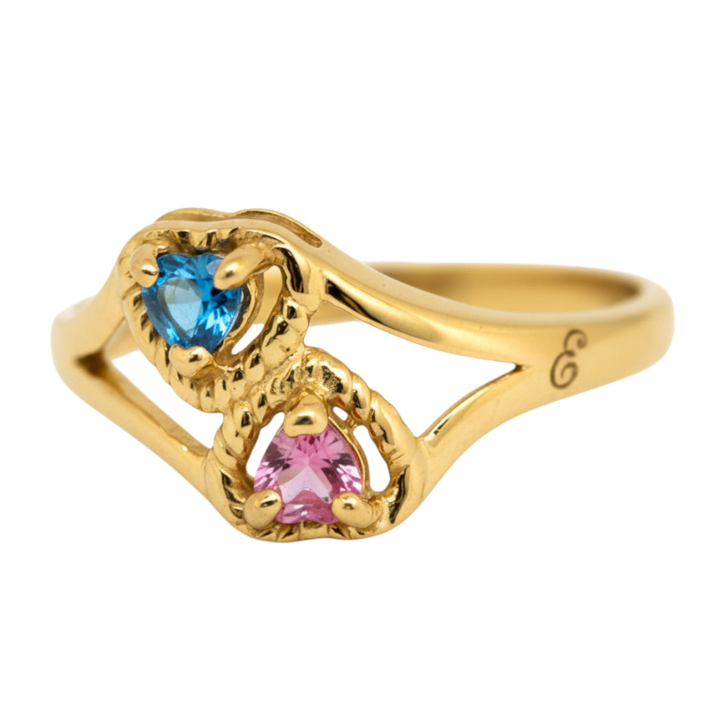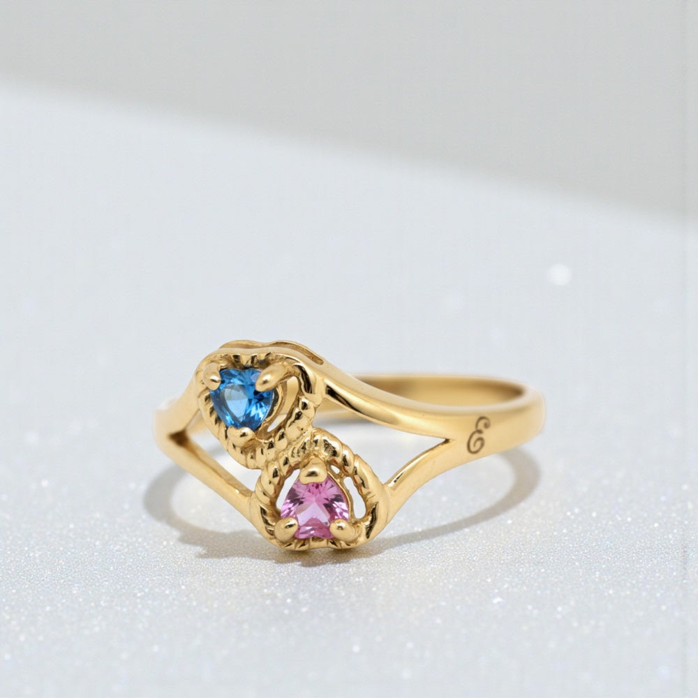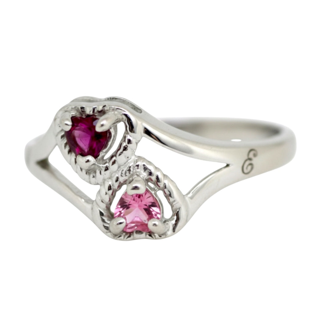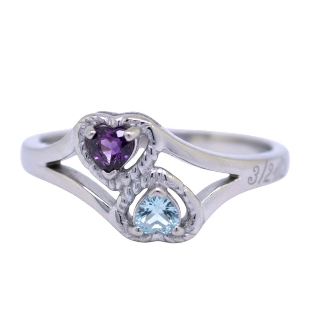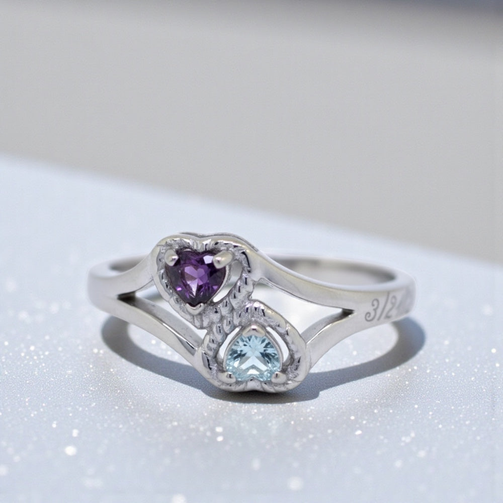 2 Stone Heart Birthstone Mother's or Couples Ring