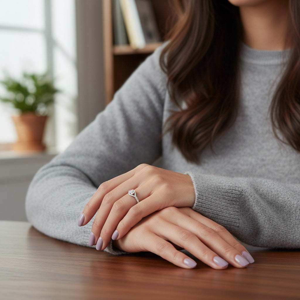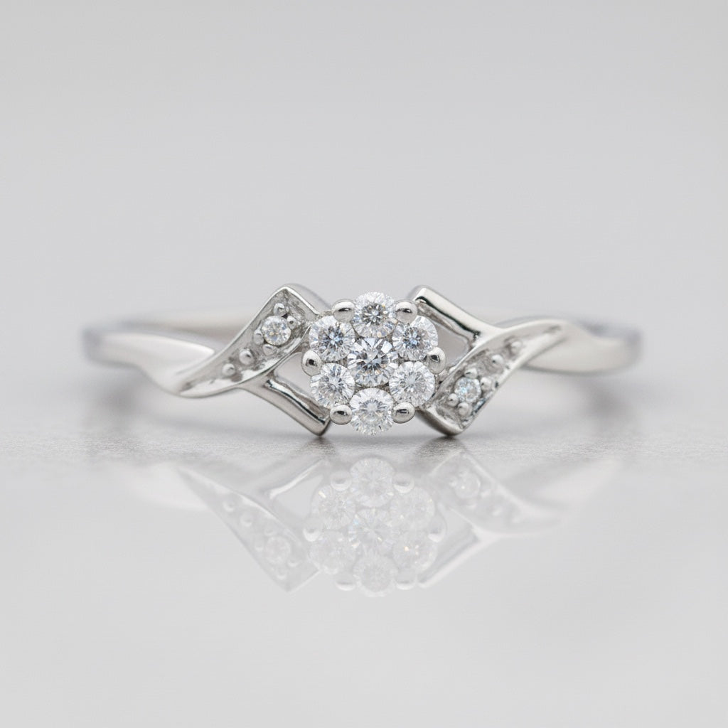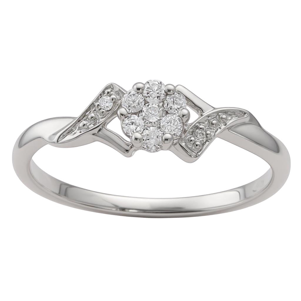 Sterling Silver Genuine Diamond Cluster Flower Promise Ring