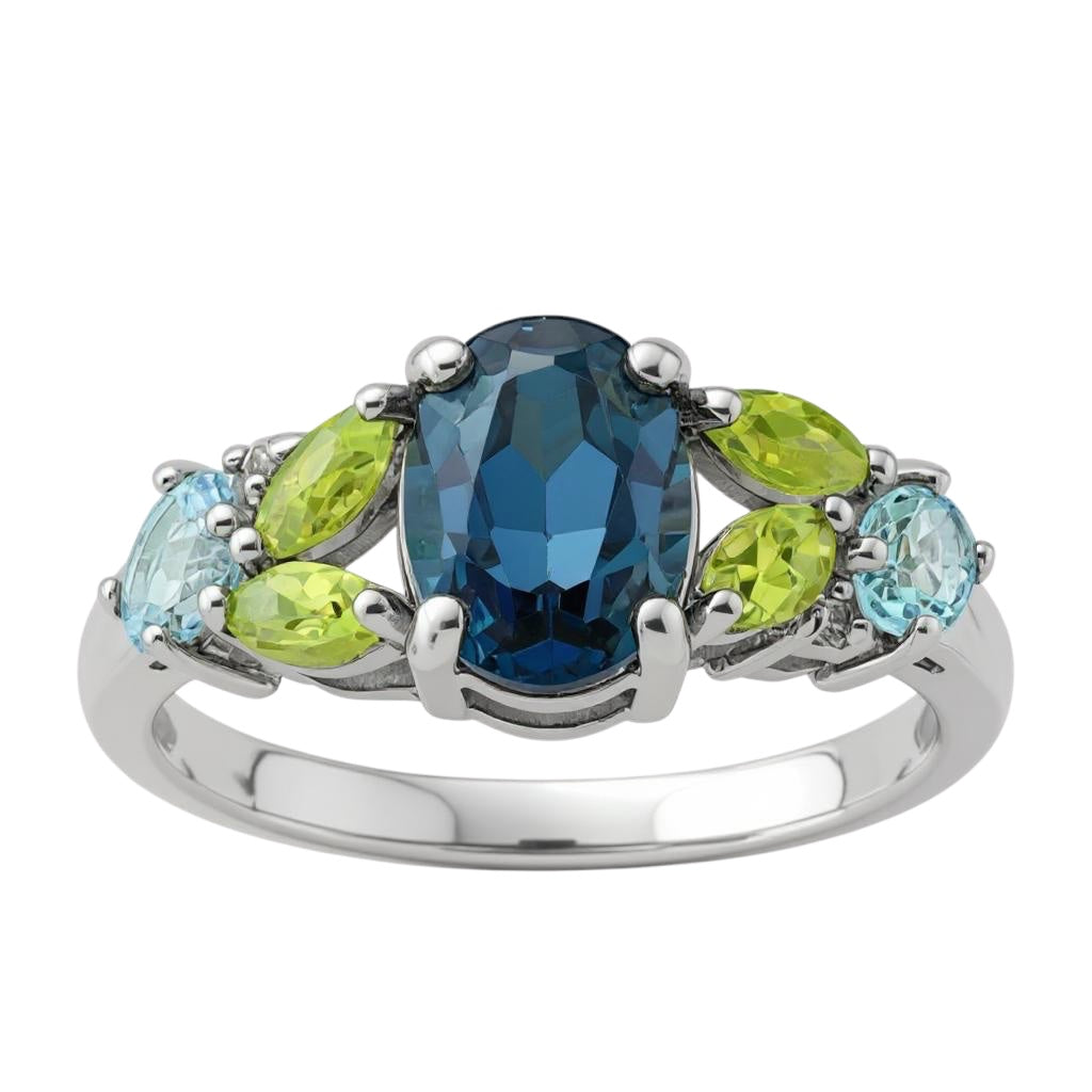 Sterling Silver London Blue, Swiss Blue, White Topaz and Peridot Ring