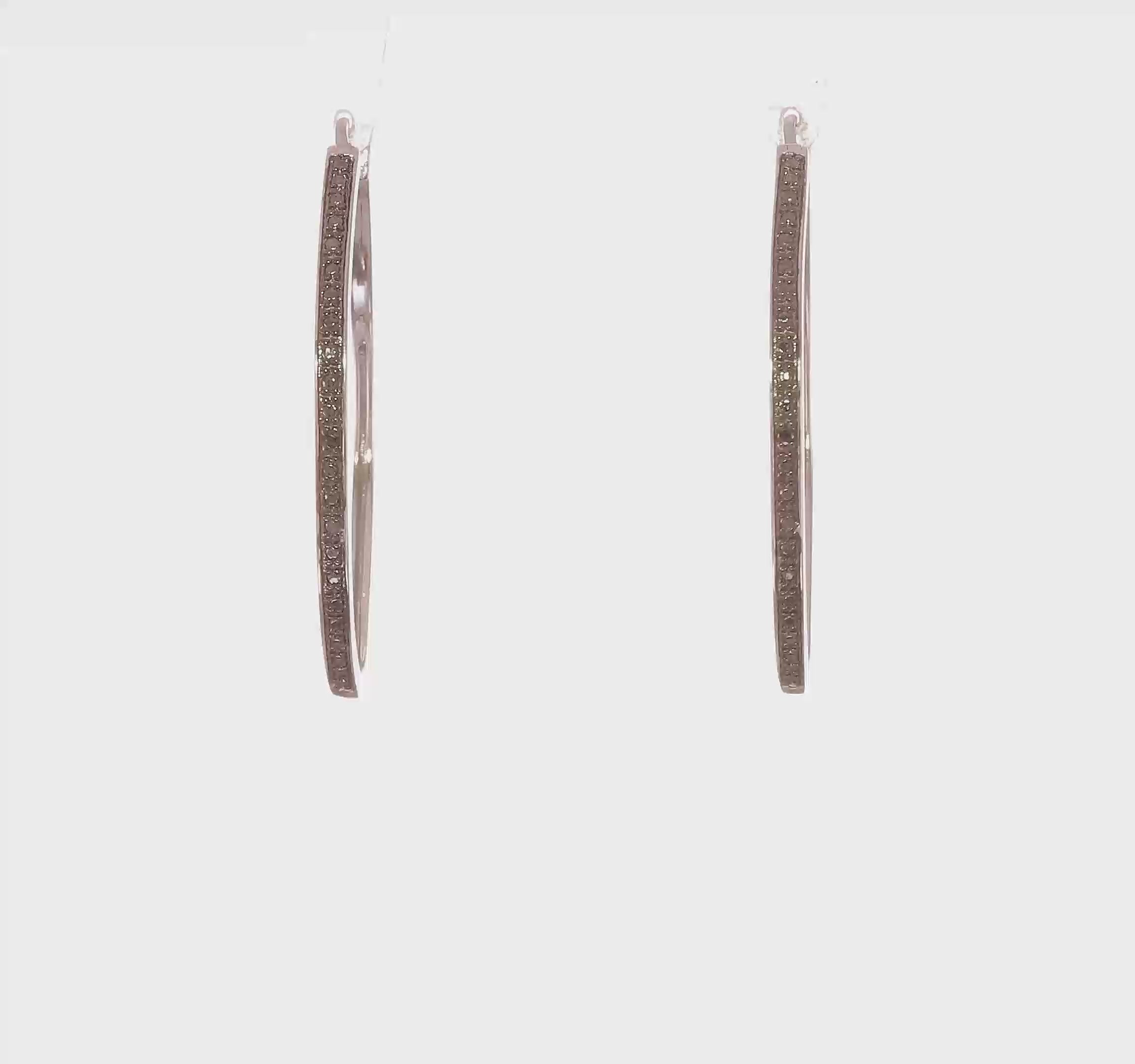 Sterling Silver Black Diamond 40mm Hoop Earrings