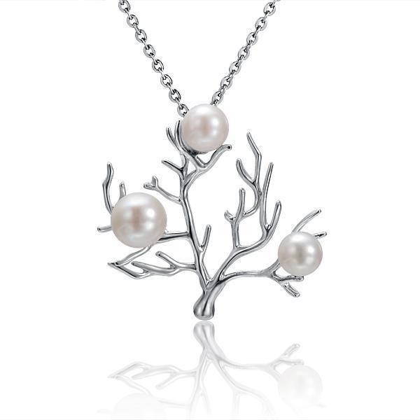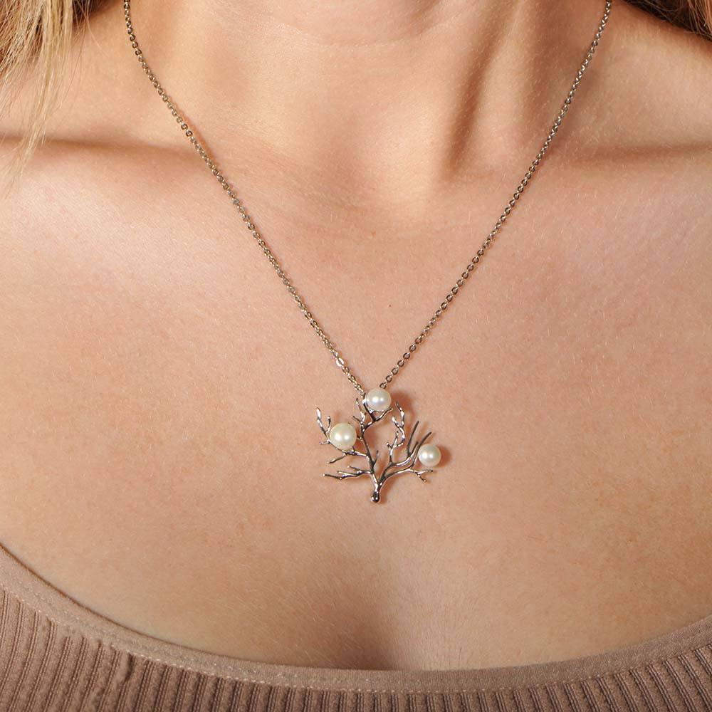 Este colgante de oro macizo de 14 quilates presenta nuestro motivo Coral original combinado con tres perlas Akoya seleccionadas a mano.