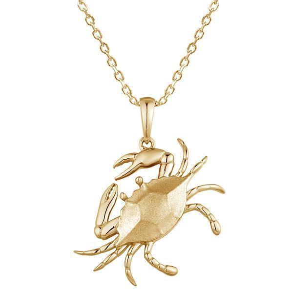 Este colgante de oro macizo de 14 quilates presenta nuestro diseño original del Cangrejo Azul de Luisiana.