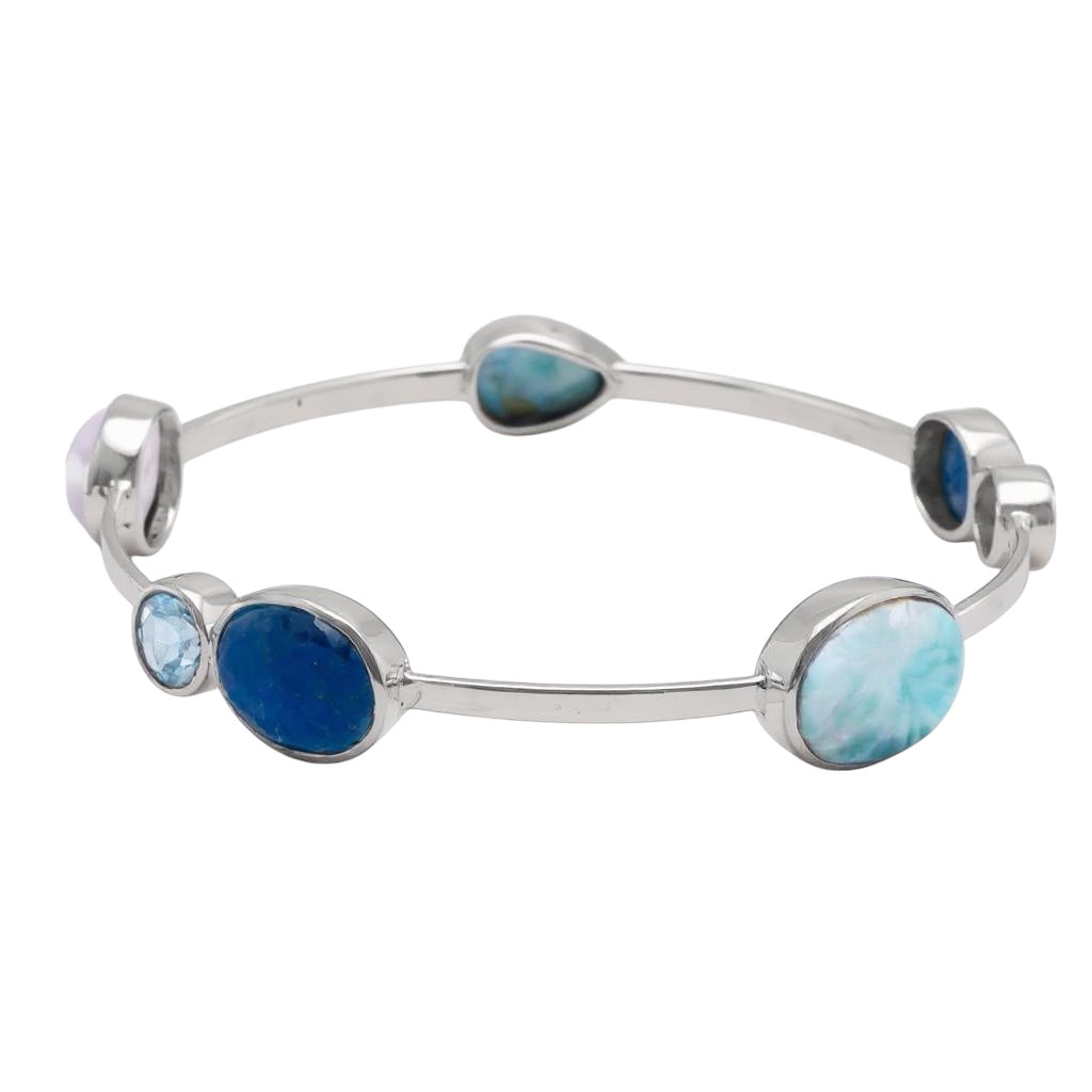 Brazalete con bisagras en plata de ley con topacio azul londinense claro y suizo