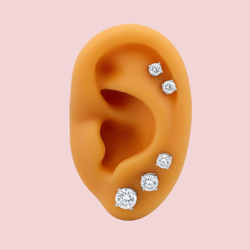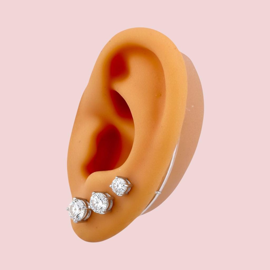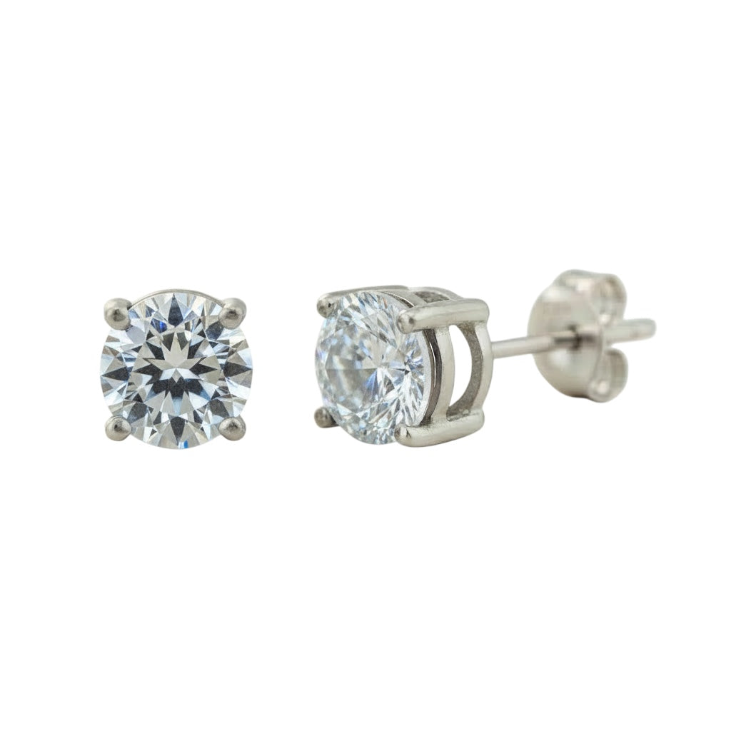 Cubic Zirconia .925 Sterling Silver Earrings - 3mm, 4mm, 5mm, 6mm or 7mm - April Birthstone Imitation Diamond