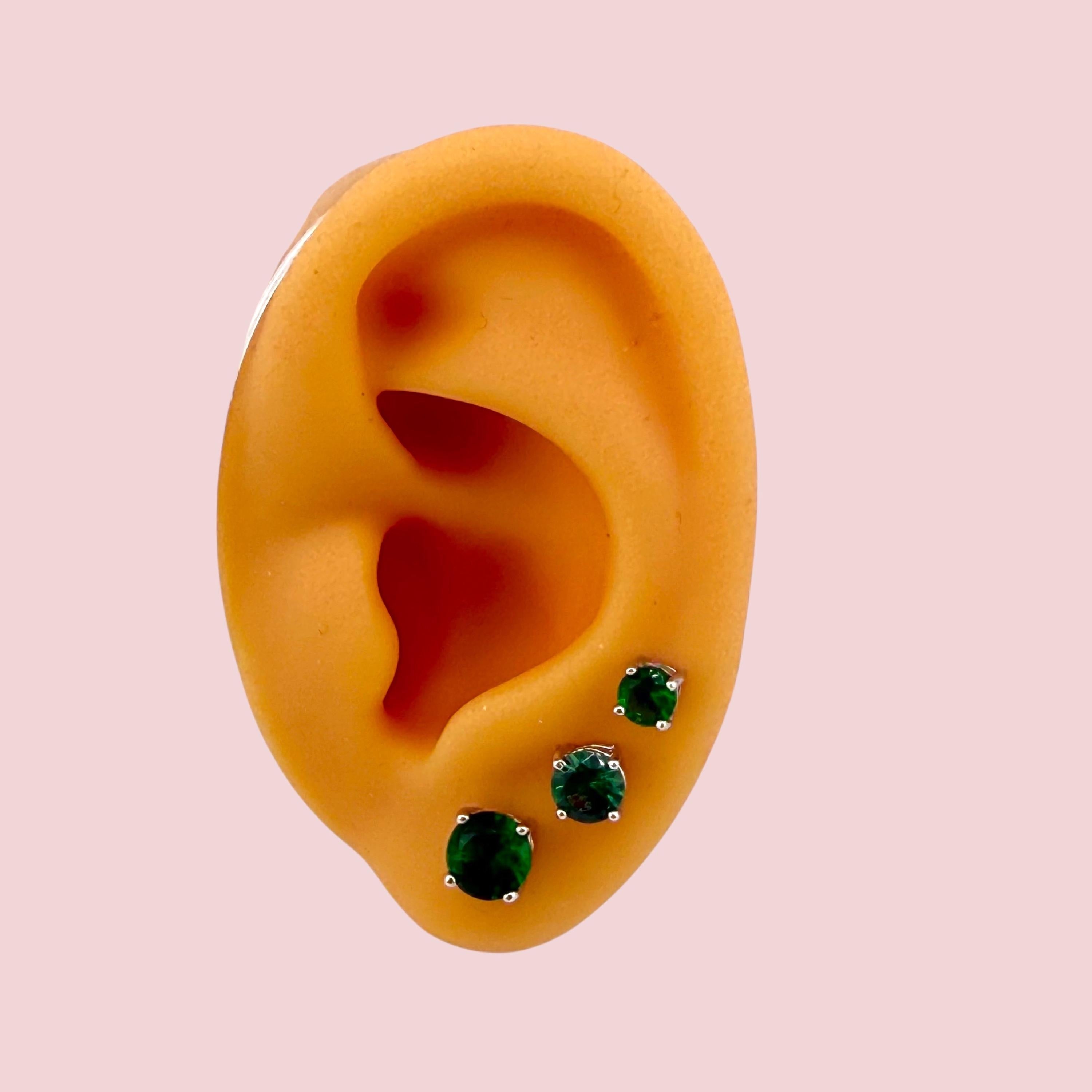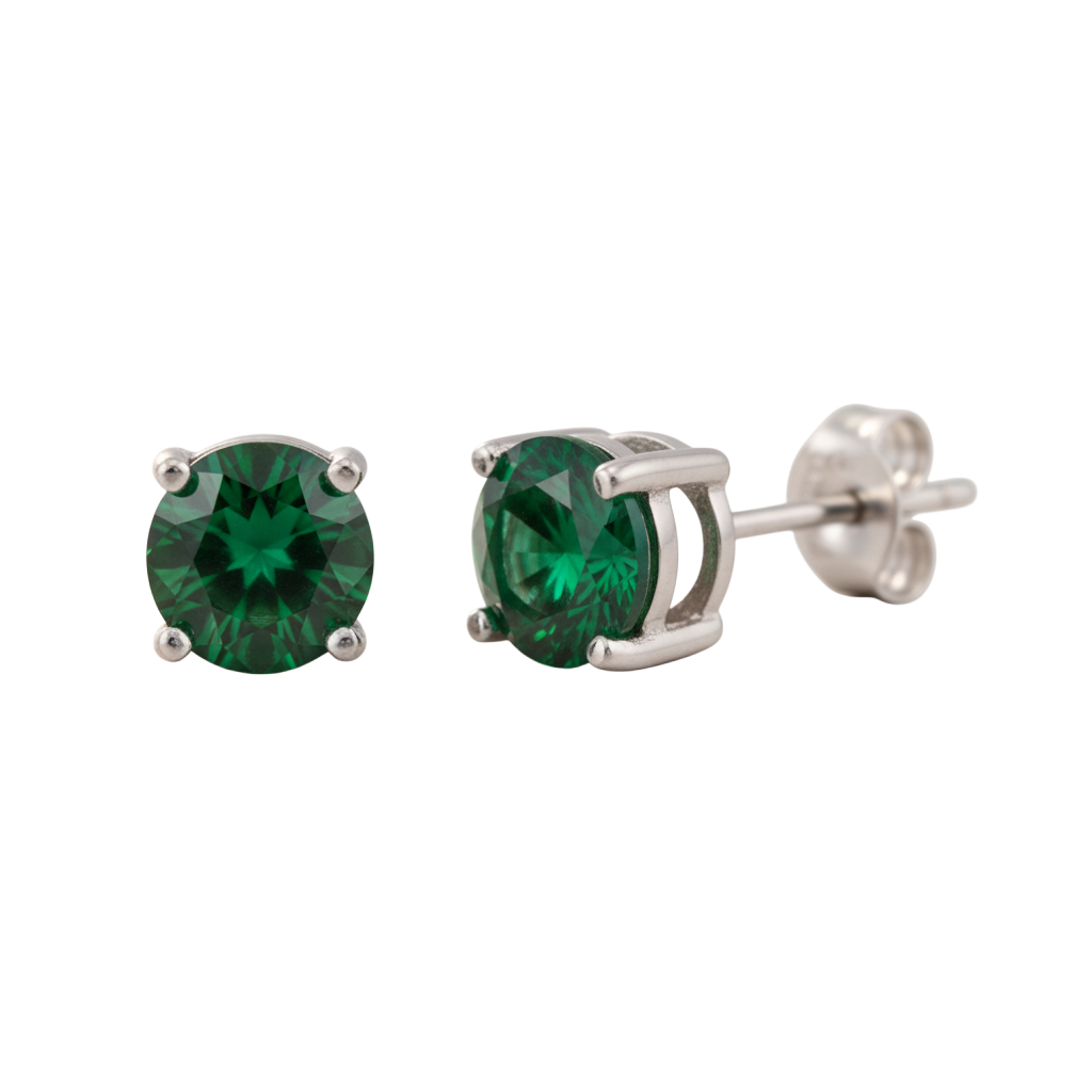 Green Cubic Zirconia Imitation Emerald Round Stud .925 Sterling Silver Earrings - 4mm, 5mm or 6mm - May Birthstone
