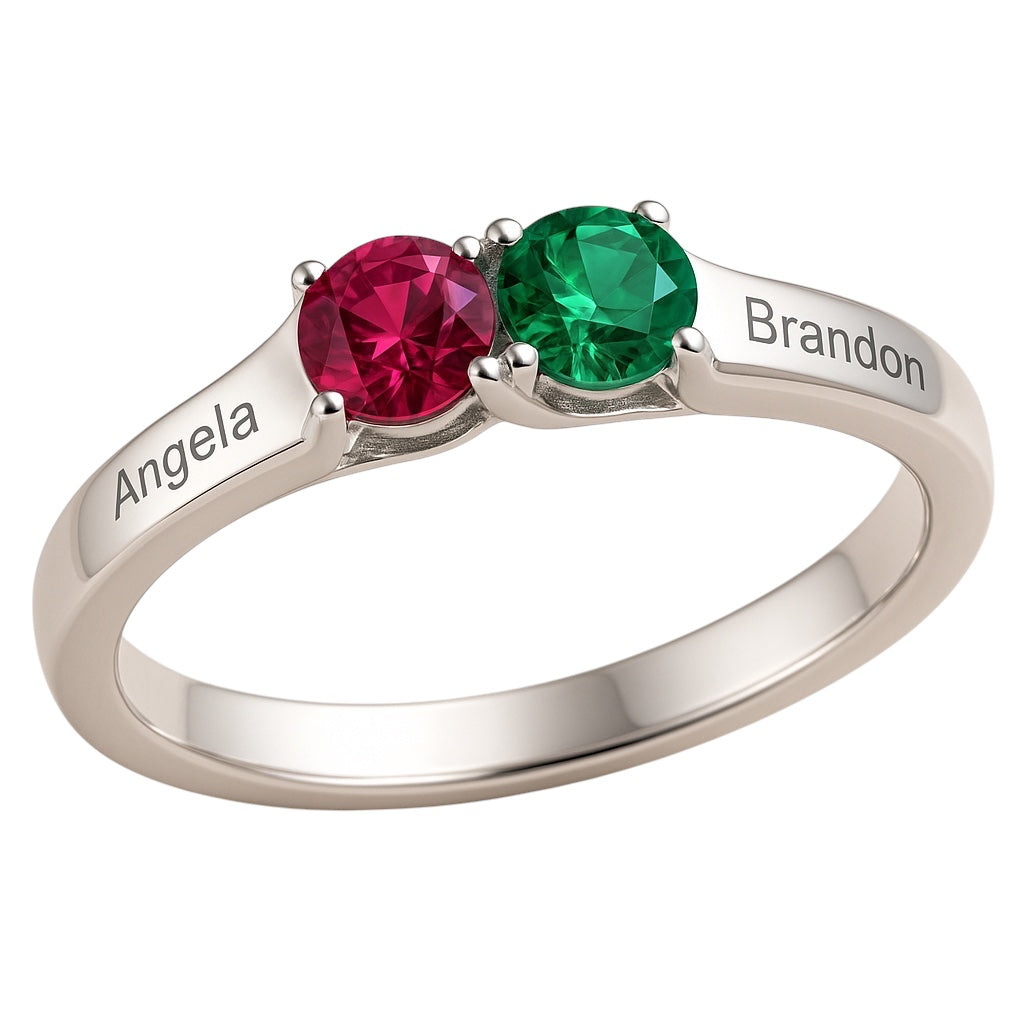 2 Stone Round Birthstone Couple's or Mother's Ring