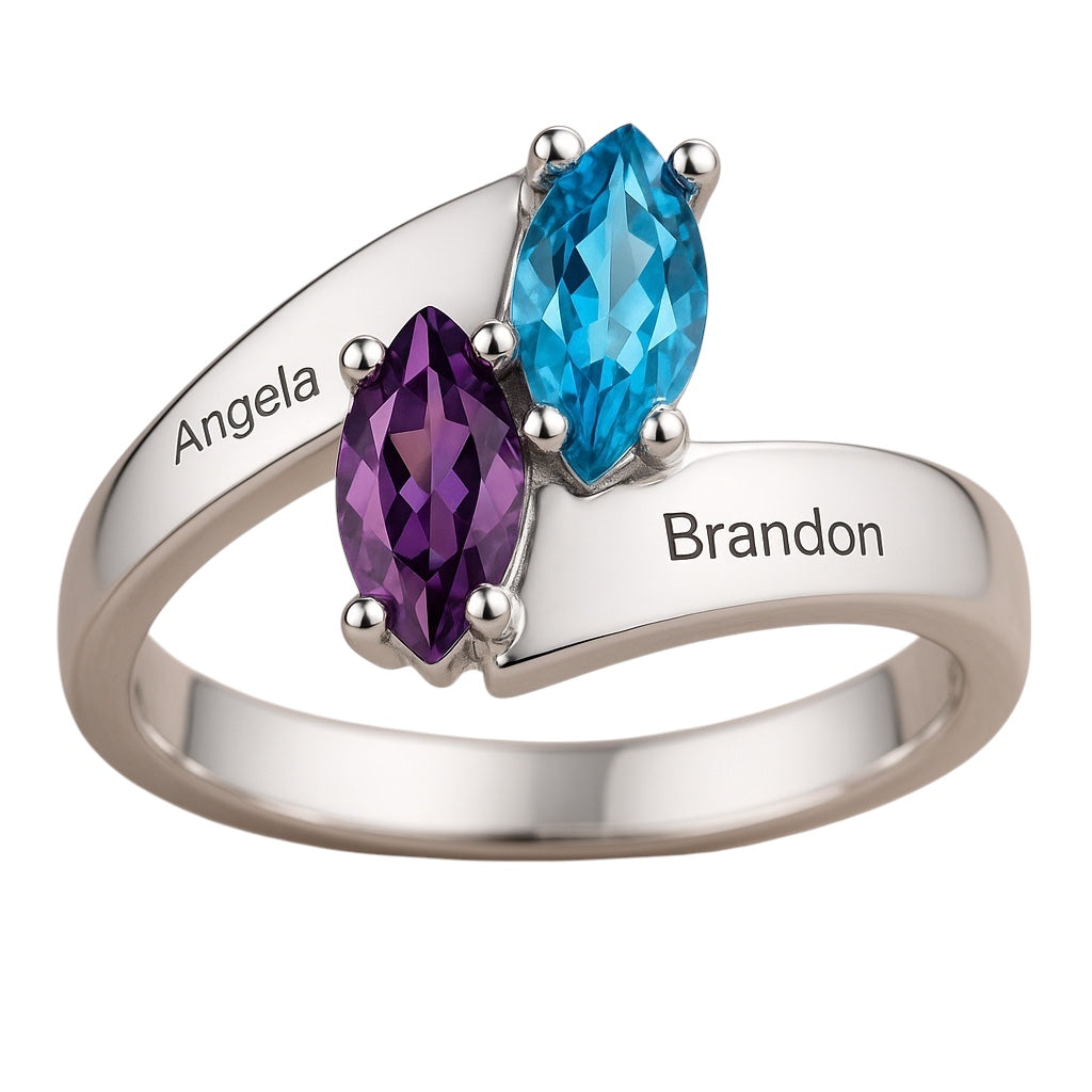 2 Stone Marquise Birthstone Couple's or Mother's Ring