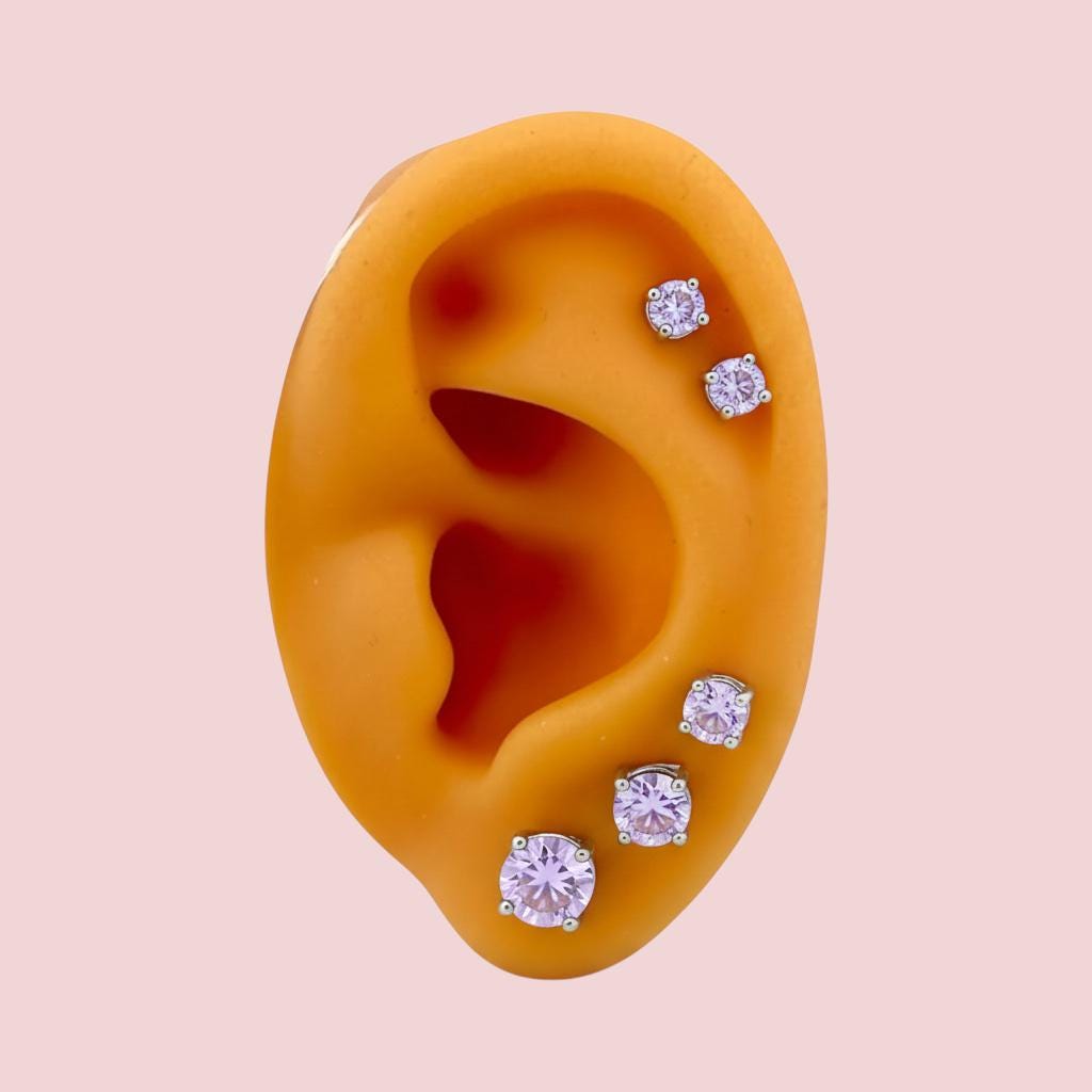 Light Purple Lavender Round Stud .925 Sterling Silver Earrings - 3mm, 4mm, 5mm, 6mm or 7mm - June Birthstone