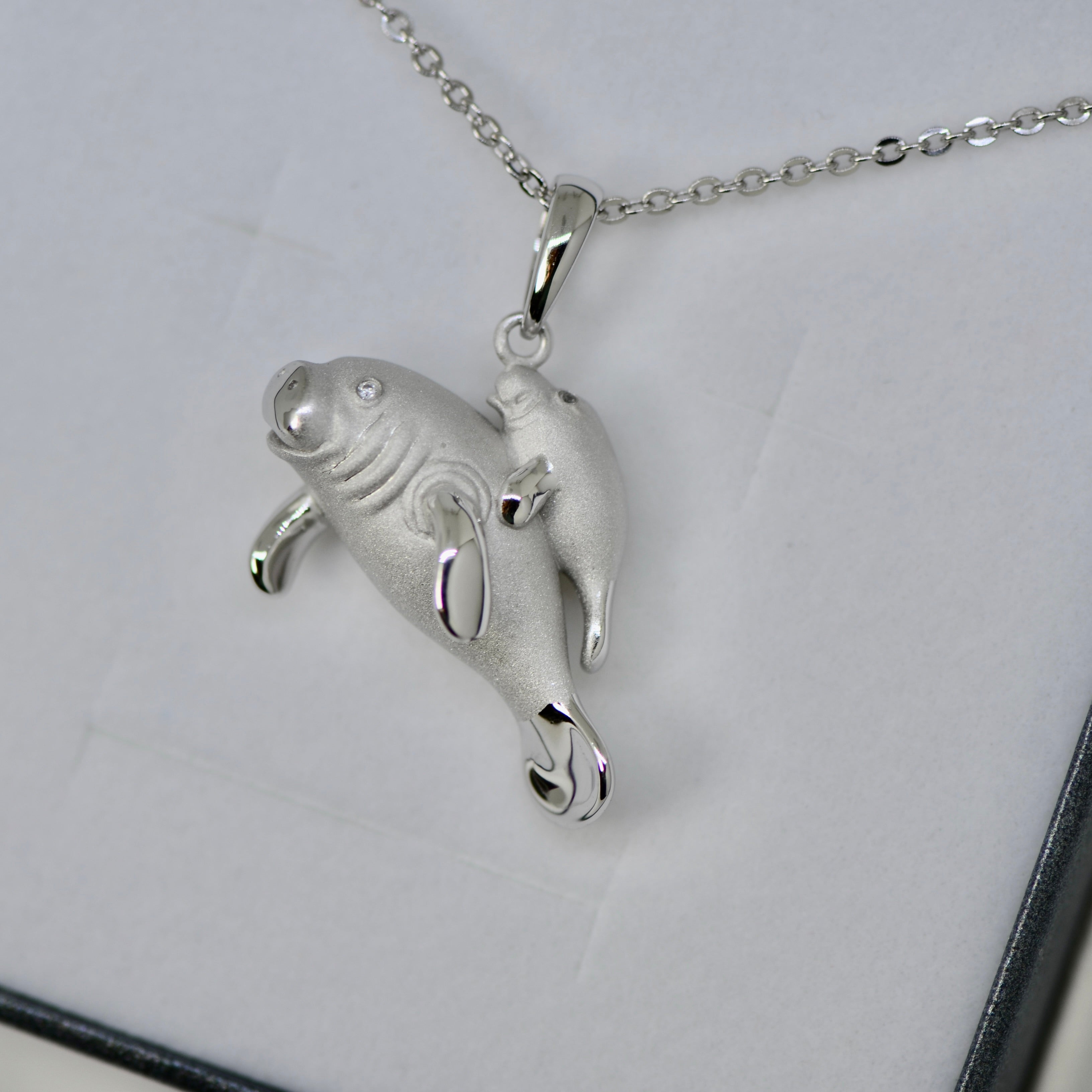 Colgante de manatí y ternero bebé de plata de ley Alamea Hawaii con acabado satinado