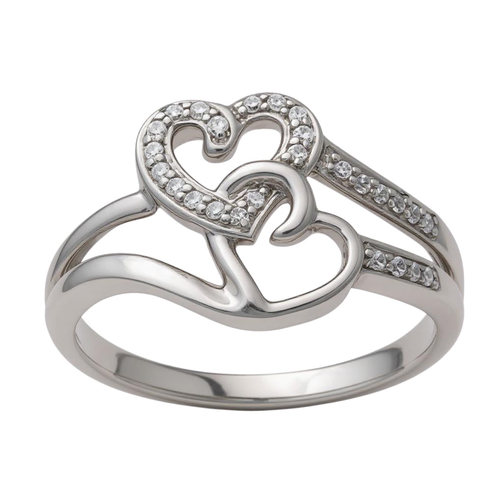 Anillo de corazones de diamantes en oro blanco de 14 k