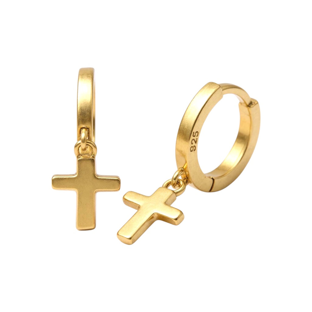 Pendientes colgantes con forma de cruz de aro Huggie de plata de ley