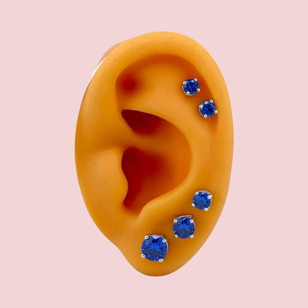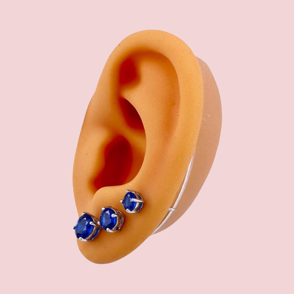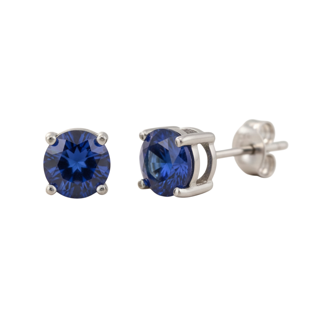 Sapphire Blue Round Stud .925 Sterling Silver Earrings - 3mm, 4mm, 5mm, 6mm or 7mm - September Birthstone