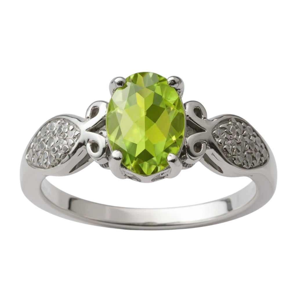Bague ovale en argent sterling avec péridot et zircone cubique blanche