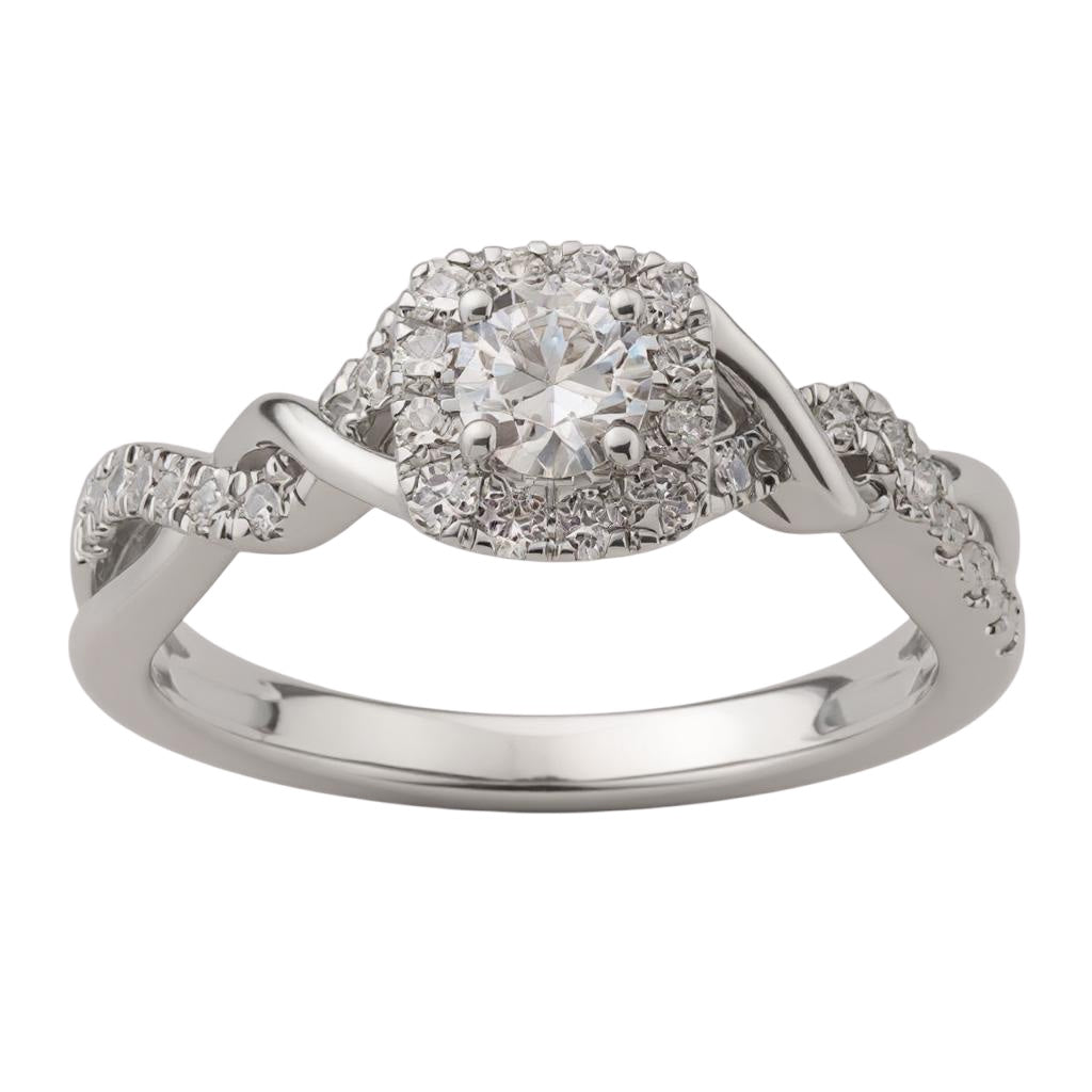 Bague de fiançailles Twist ByPass en or blanc 10 carats ou 14 carats VS/SI GH, cultivée en laboratoire