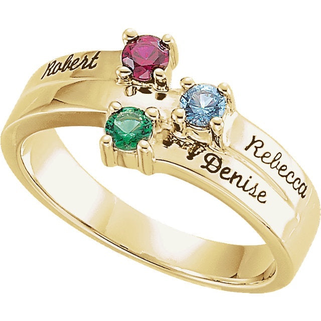 Bague avec pierre de naissance de la famille de la mère avec nom gravé en couches