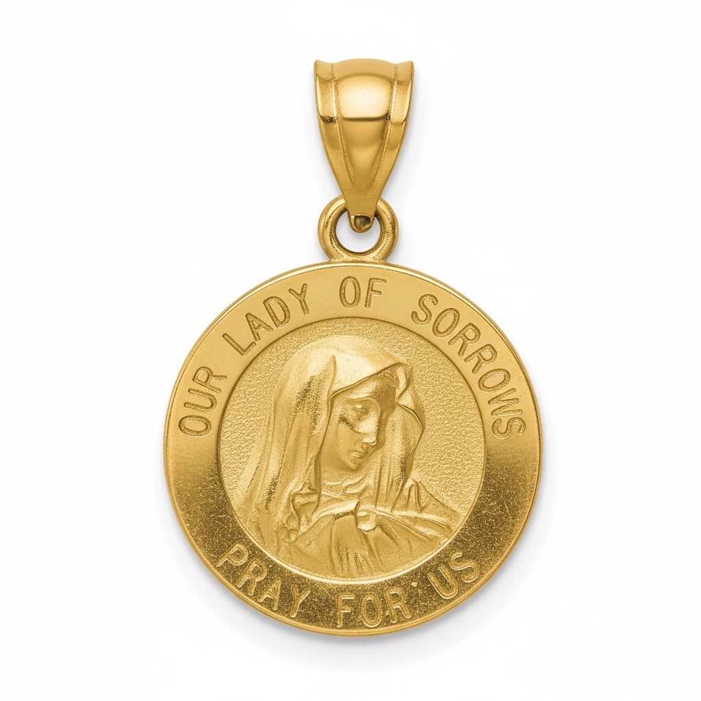 Pendentif creux en or 14 carats avec médaille Notre-Dame des Douleurs
