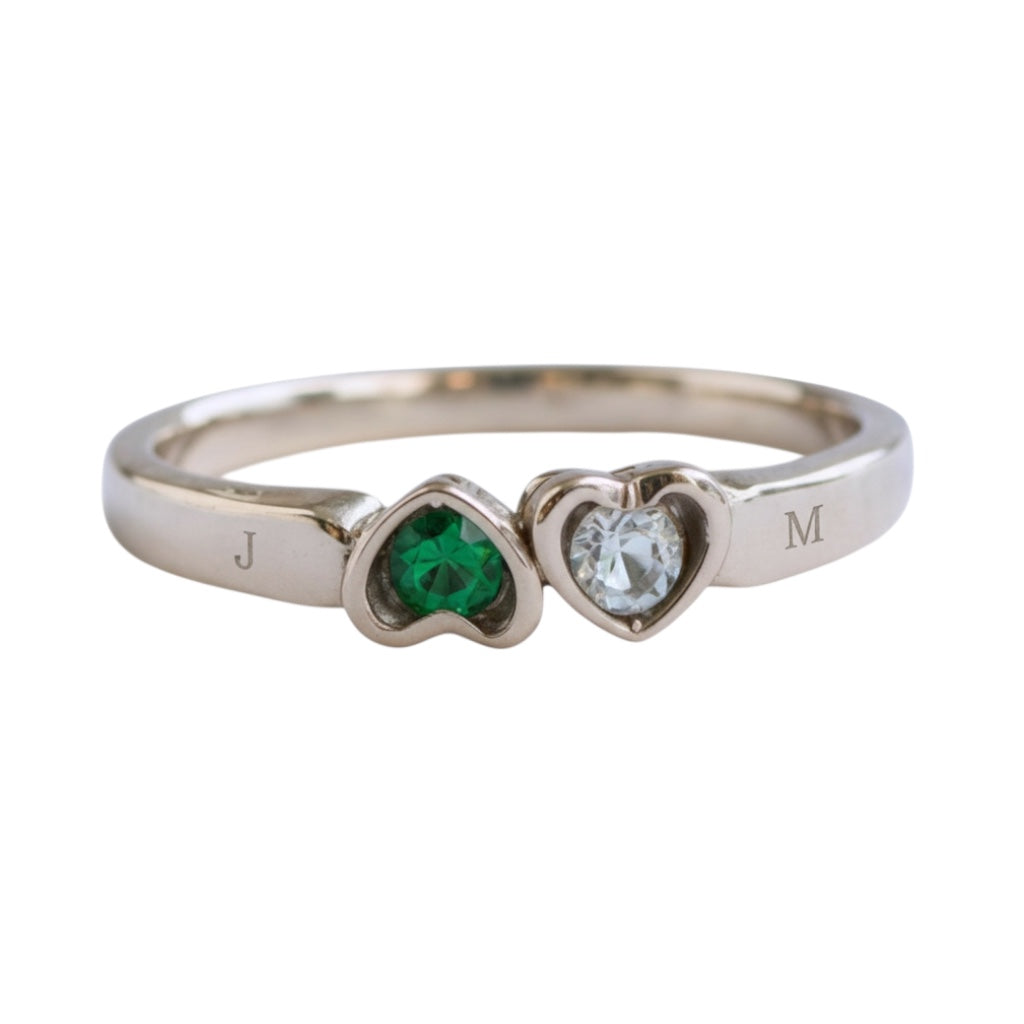 2 Stone Round Birthstone Couple's or Mother's Heart Ring