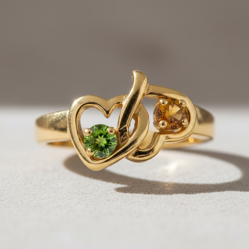 Bague 2 Pierres de Naissance Coeur Mère ou Couple