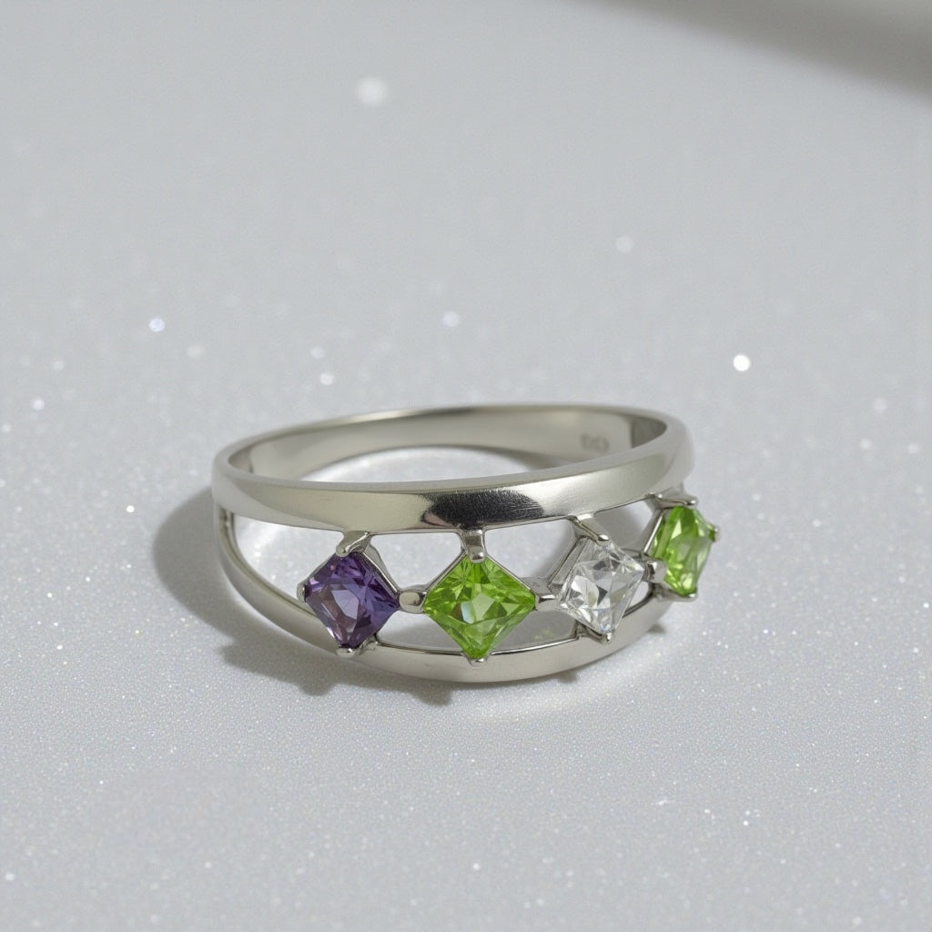 Bague avec pierre de naissance de la famille de la mère, taille carrée princesse