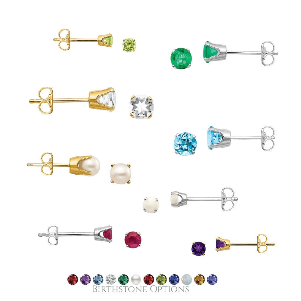 Boucles d'oreilles à tige rondes en or 14 carats avec pierre de naissance véritable – Différentes tailles