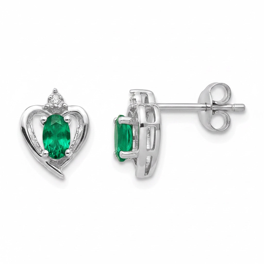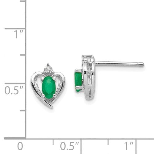 Boucles d'oreilles à tige en or blanc 14 carats avec diamants et véritable cœur d'émeraude
