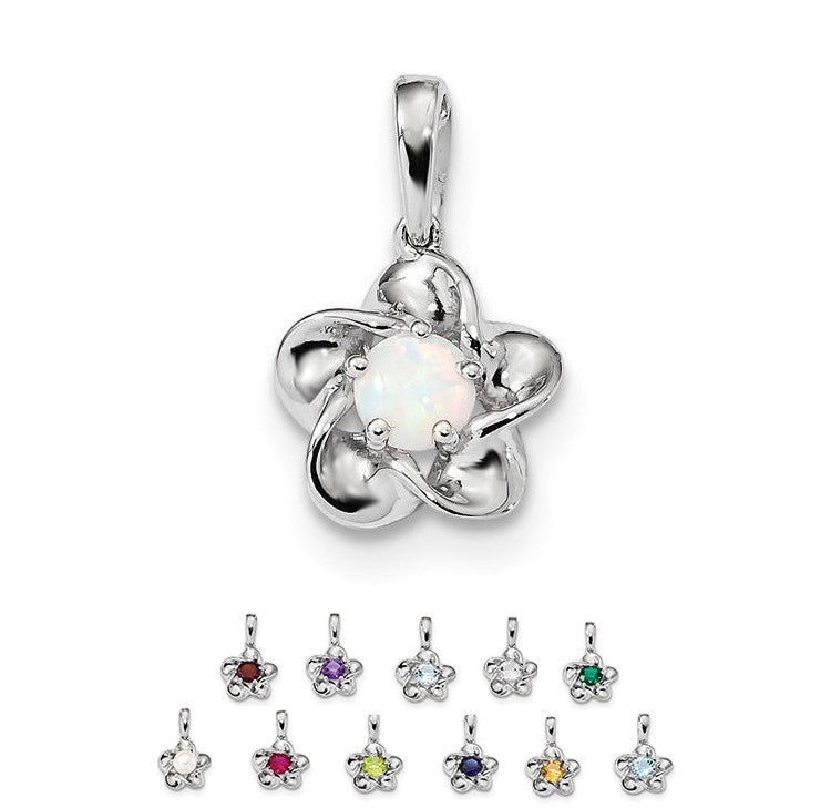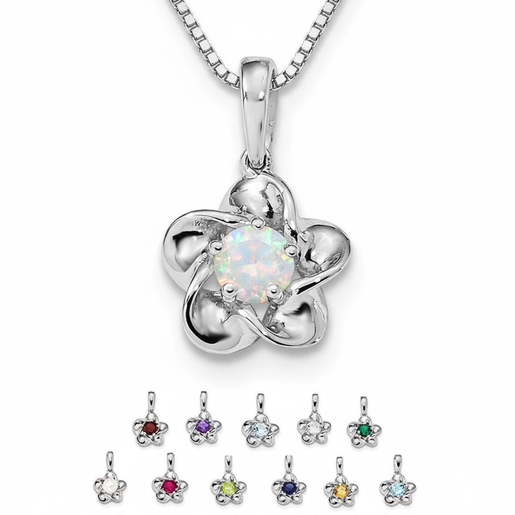 Pendentif fleur en argent sterling - Divers choix de pierres de naissance