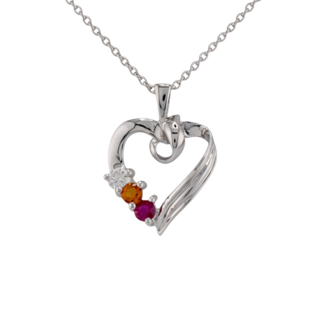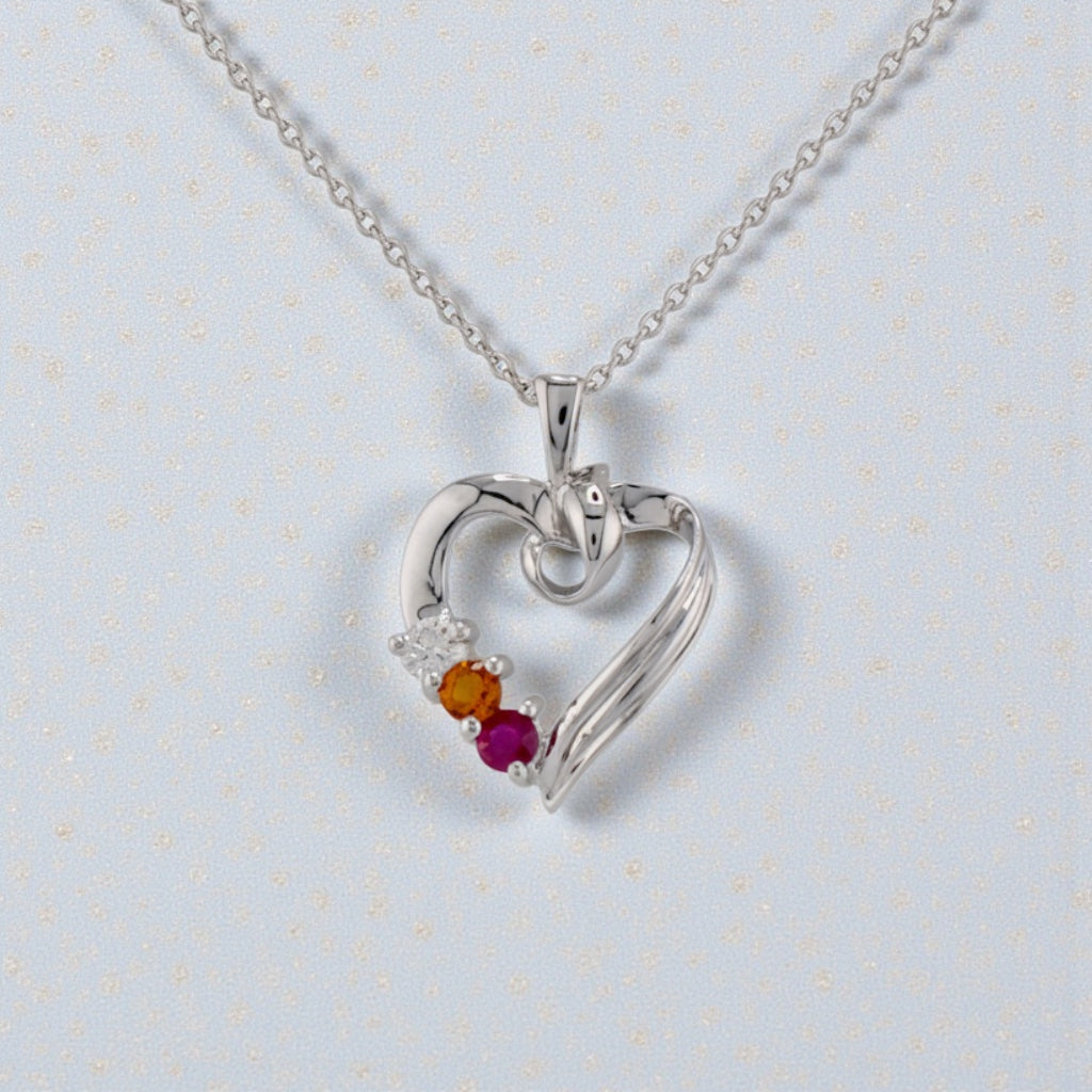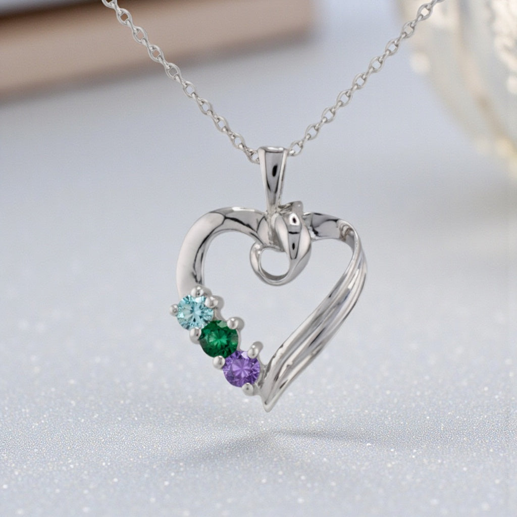 Pendentif cœur en or 14 carats représentant la famille de la mère, orné de pierres de naissance