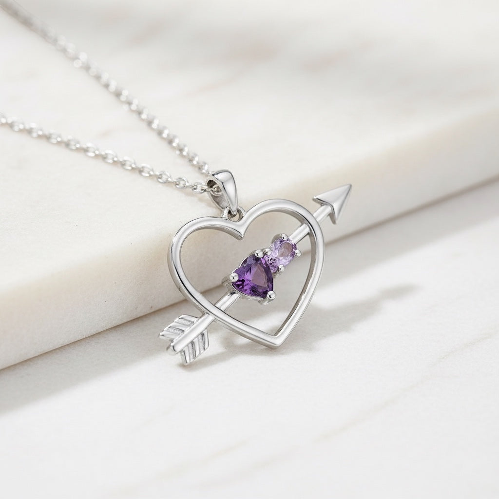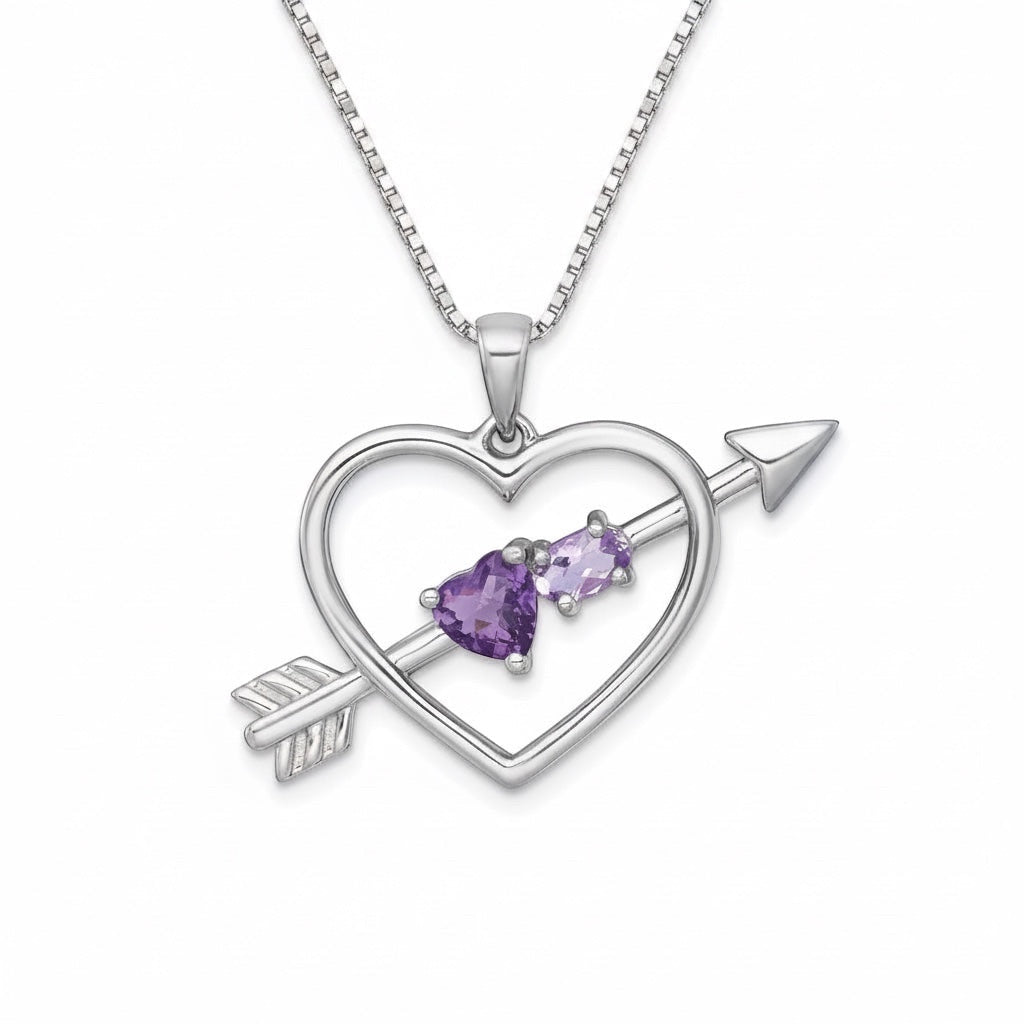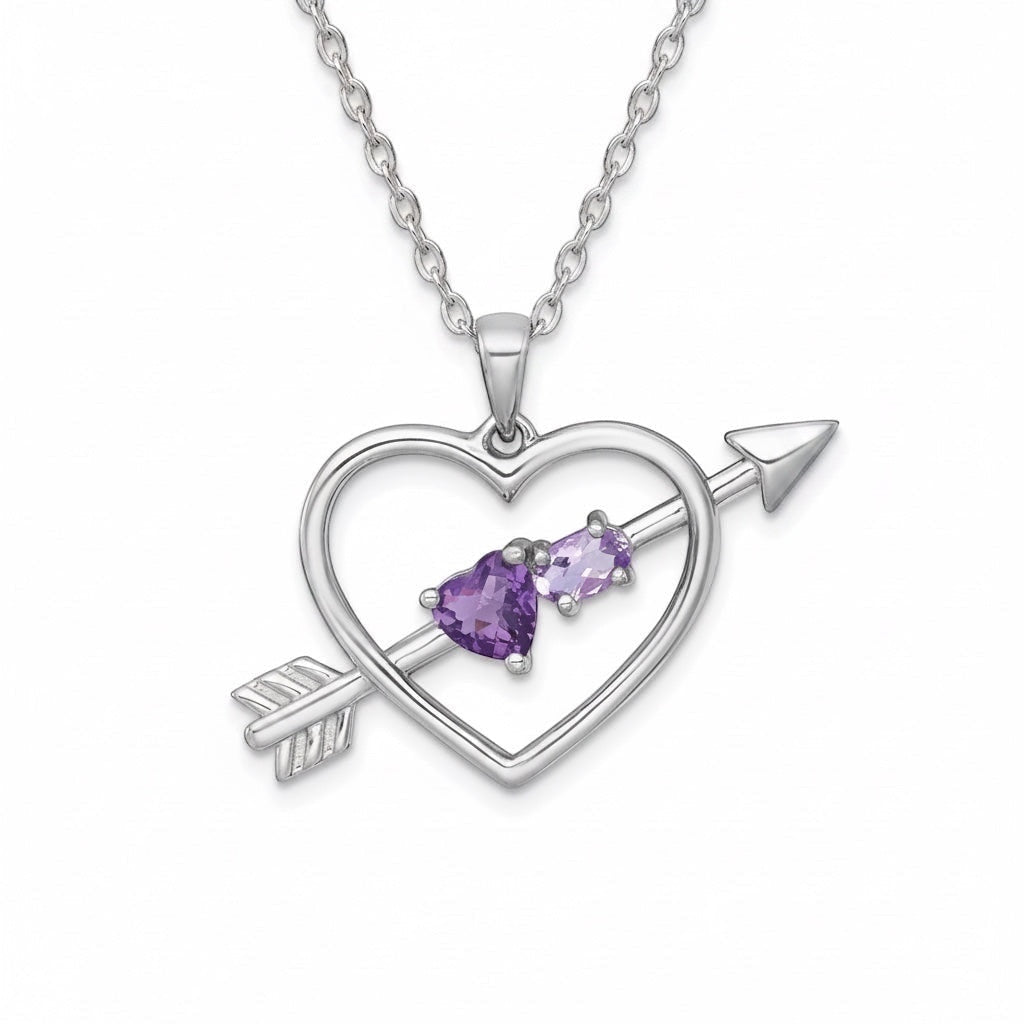 Pendentif en argent sterling, améthyste et quartz rose de France en forme de cœur avec flèche